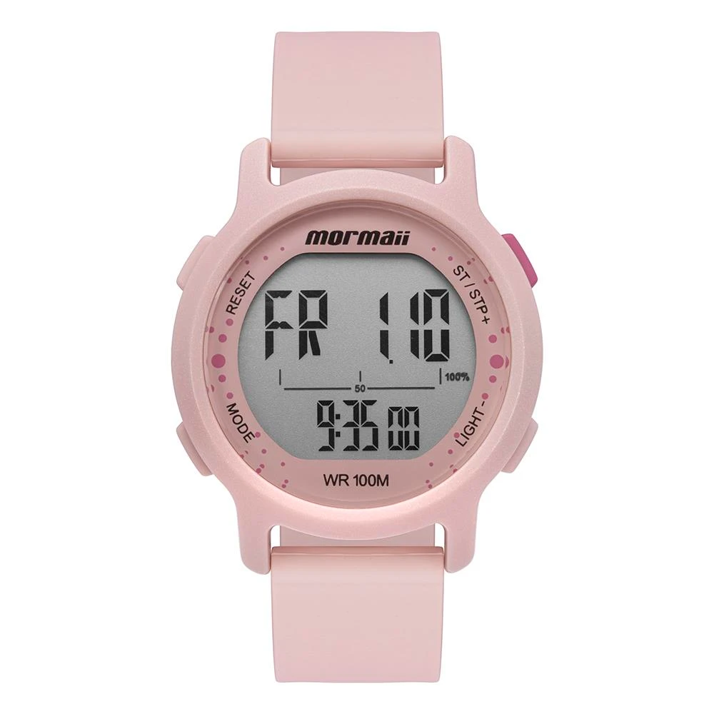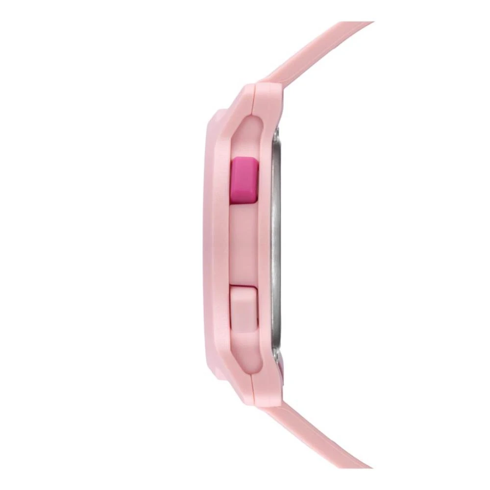 Caixa de Polímero Rosa Claro PerolizadoPulseira de Silicone Rosa ClaroFundo ParafusadoResistente à Água 5 ATMDiâmetro / Largura da Caixa: 35.00 MMFunções: Digital, Cronógrafo, Iluminação, Alarme, Timer, Pedômetro (Contador de Passos) Contador de Calorias Queimadas e Distância PercorridaVidro: AcrílicoAlimentação do Maquinário: BateriaMostrador Rosa ClaroGarantia de 1 Ano