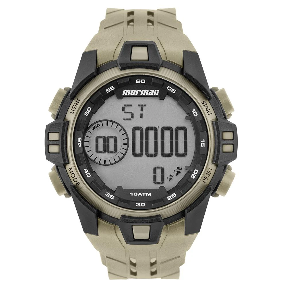 Caixa de Polímero Preta com detalhes cáquiPulseira de Poliuretano CáquiFundo de Aço ParafusadoResistente à Água 10 ATMDiâmetro / Largura da Caixa: 50.00 MMFunções: Digital, Alarme, Cronógrafo, Iluminação, TimerVidro: AcrílicoMostrador Preto com detalhes brancosAlimentação do Maquinário BateriaGarantia de 1 Ano