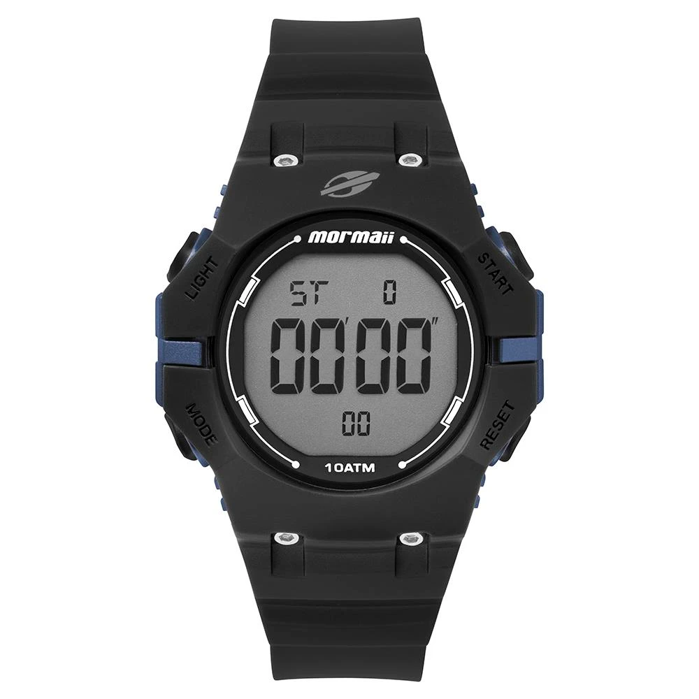 Caixa de Polímero PretaPulseira de Poliuretano PretaFundo de Aço ParafusadoResistente à Água 10 ATMDiâmetro / Largura da Caixa: 46.00 MMFunções: Digital, Alarme, Cronógrafo, IluminaçãoVidro: AcrílicoMostrador Preto com detalhes brancosAlimentação do Maquinário BateriaGarantia de 1 Ano