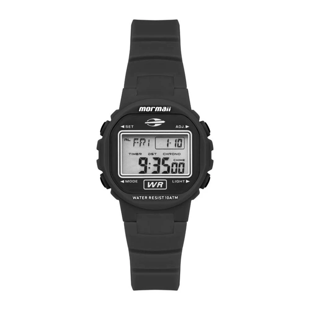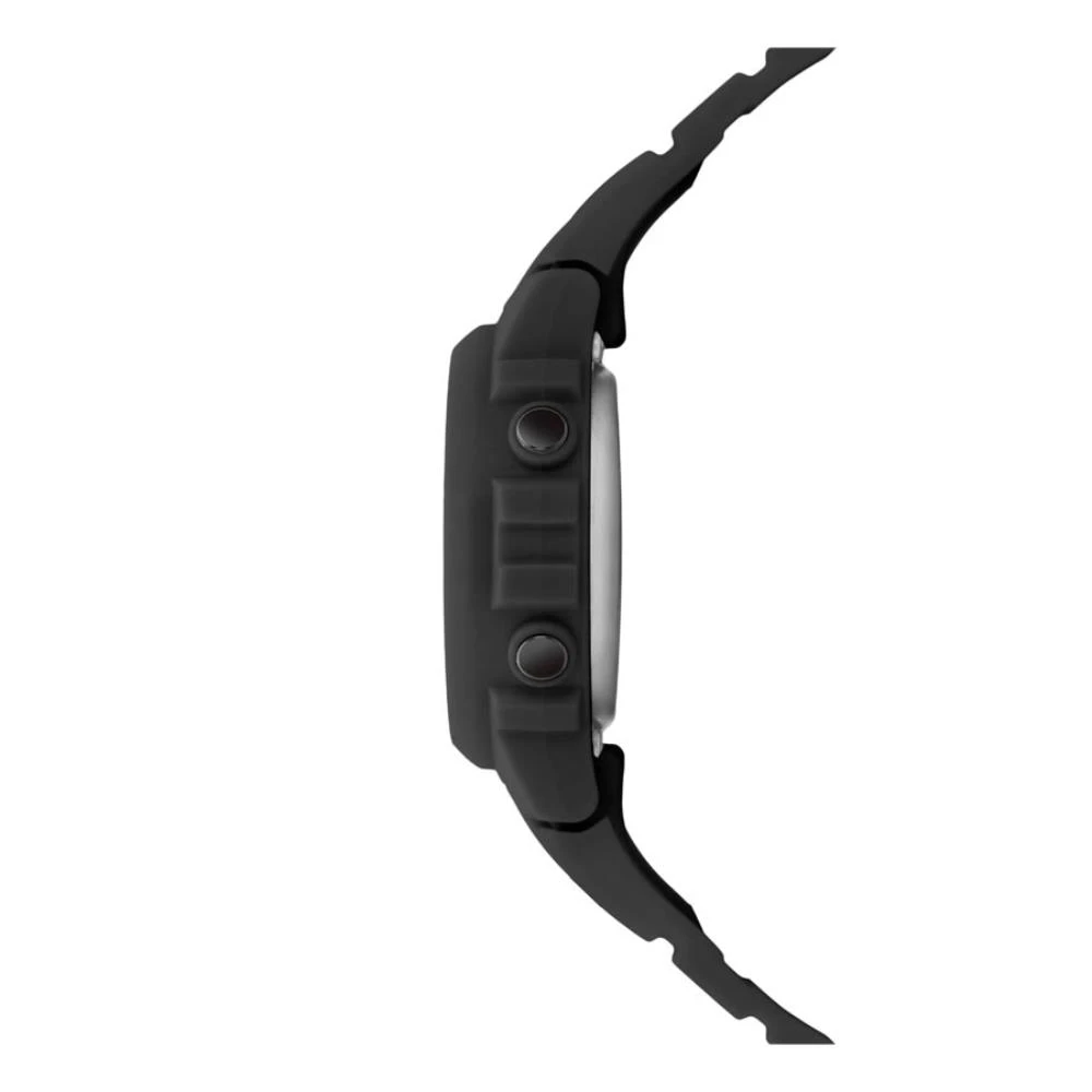 Caixa de Polímero PretaPulseira de Poliuretano PretaFundo de Aço ParafusadoResistente à Água 5 ATMDiâmetro / Largura da Caixa: 35.00 MMFunções: Digital, 2 Alarmes, Cronógrafo, Iluminação, Timer, GTM (Horário Mundial)Vidro: AcrílicoAlimentação do Maquinário BateriaMostrador PretoGarantia de 1 Ano