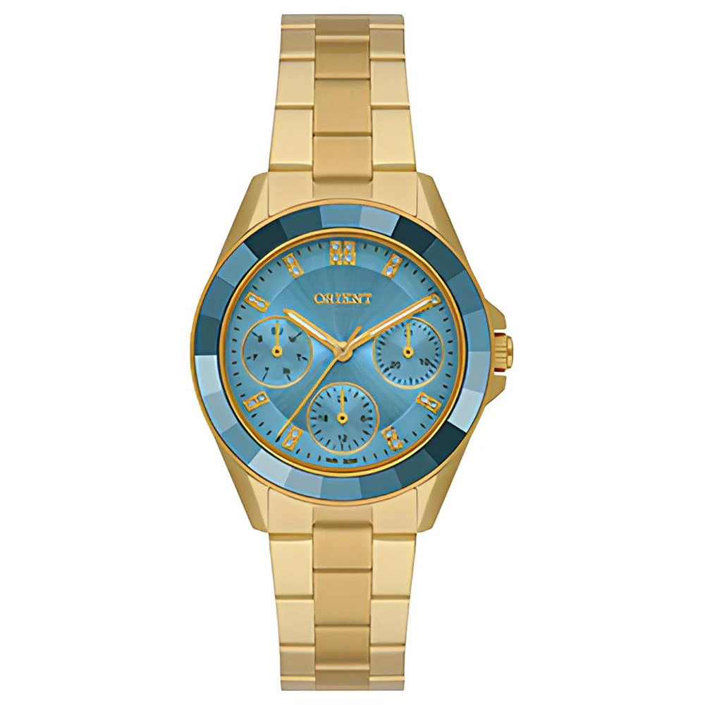 Caixa: AçoPulseira: AçoMedida da caixa: 33MMVidro: Cristal MineralAlimentação do maquinário: BateriaResistência à água: 50mfunções: Analógico, Multifunção (Calendário Mensal, Semanal e Horário em 24h)Mostrador Azul com PedrasAro Externo Bisotê Fixo AzulFundo de Pressão