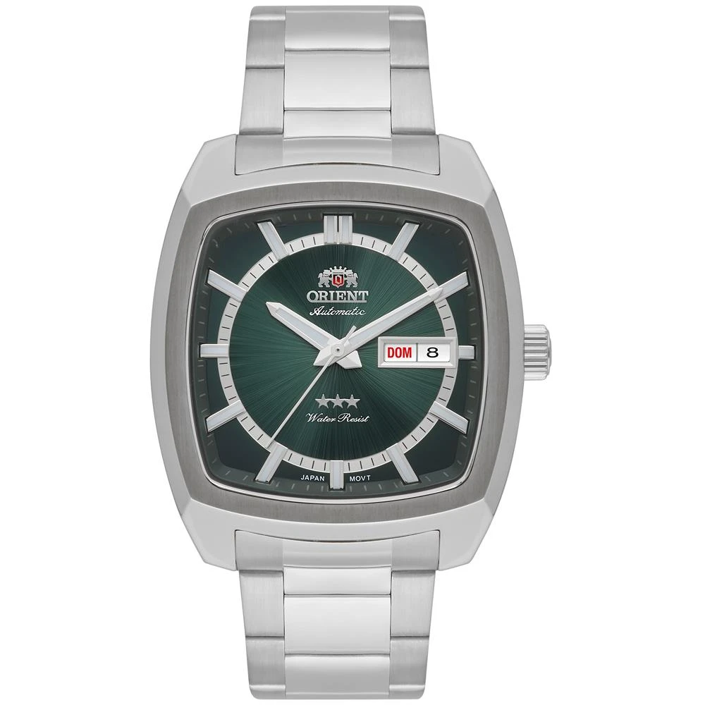 linha: Orient Automatic Três Estrelasvidro: Cristal Mineralfunções: Automático, Analógico, Calendário Mensal, Calendário Semanal com opção em Português e Inglêsresistência à água: 50 Mcaracterísticas: com caixa Aço inoxidável e pulseira Aço Inoxidáveldiâmetro da caixa: 4,1 cm x 4,1 cmalimentação do maquinário: Mecânico (Automático)