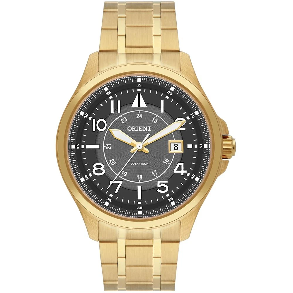 Vidro: Cristal MineralFunções: Calendario, Analógico, SolarResistencia à água: 50 MCaracterísticas: com caixa Aço inoxidável e pulseira Aço inoxidávelDiâmetro da caixa: 4,2 cmAlimentação do Maquinário: Energia SolarMostrador Preto com númerosFundo de PressãoLinha: Orient Solartech NeosportsGarantia de 1 ano