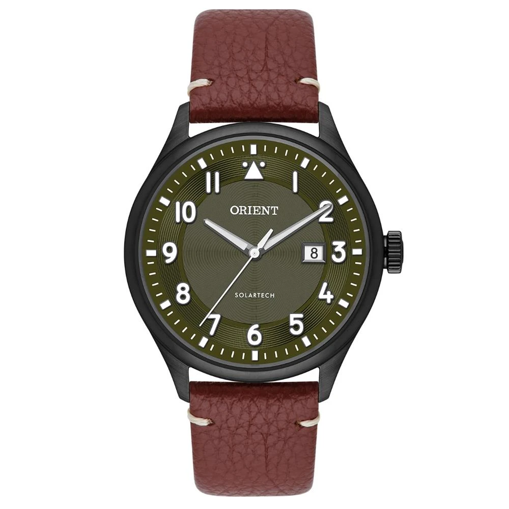Vidro: Cristal MineralFunções: Calendario, Analógico, SolarResistencia à água: 50 MCaracterísticas: com caixa Aço inoxidável e pulseira Couro Legítimo MarromDiâmetro da caixa: 4,0 cmAlimentação do Maquinário: Energia SolarMostrador Verde com númerosFundo RosqueadoLinha: Orient Solartech NeosportsGarantia de 1 ano