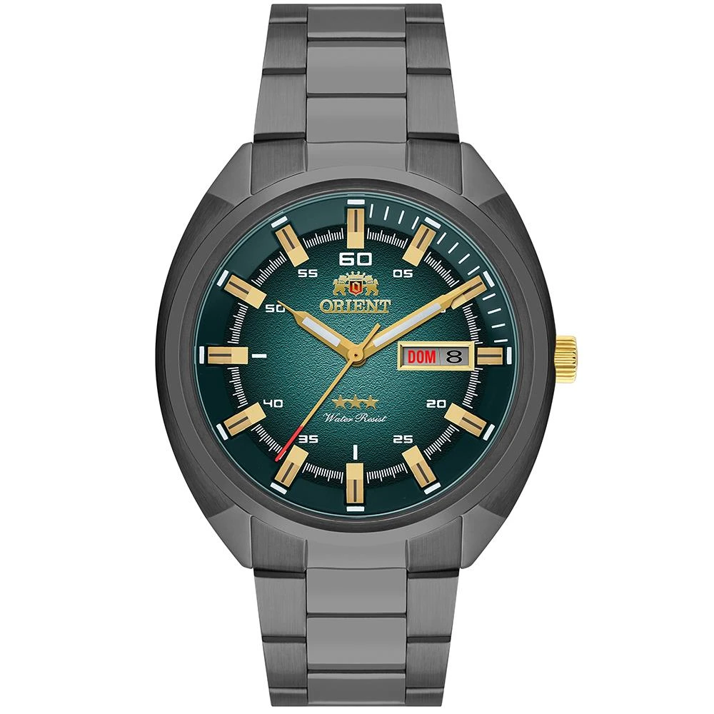 linha: Orient Automatic Três Estrelasvidro: Cristal Mineralfunções: Automático, Analógico, Calendário Mensal, Calendário Semanal com opção em Espanhol e Inglêsresistência à água: 50 Mcaracterísticas: com caixa Aço inoxidável e pulseira Aço Inoxidáveldiâmetro da caixa: 4,2 cmalimentação do maquinário: Mecânico (Automático)