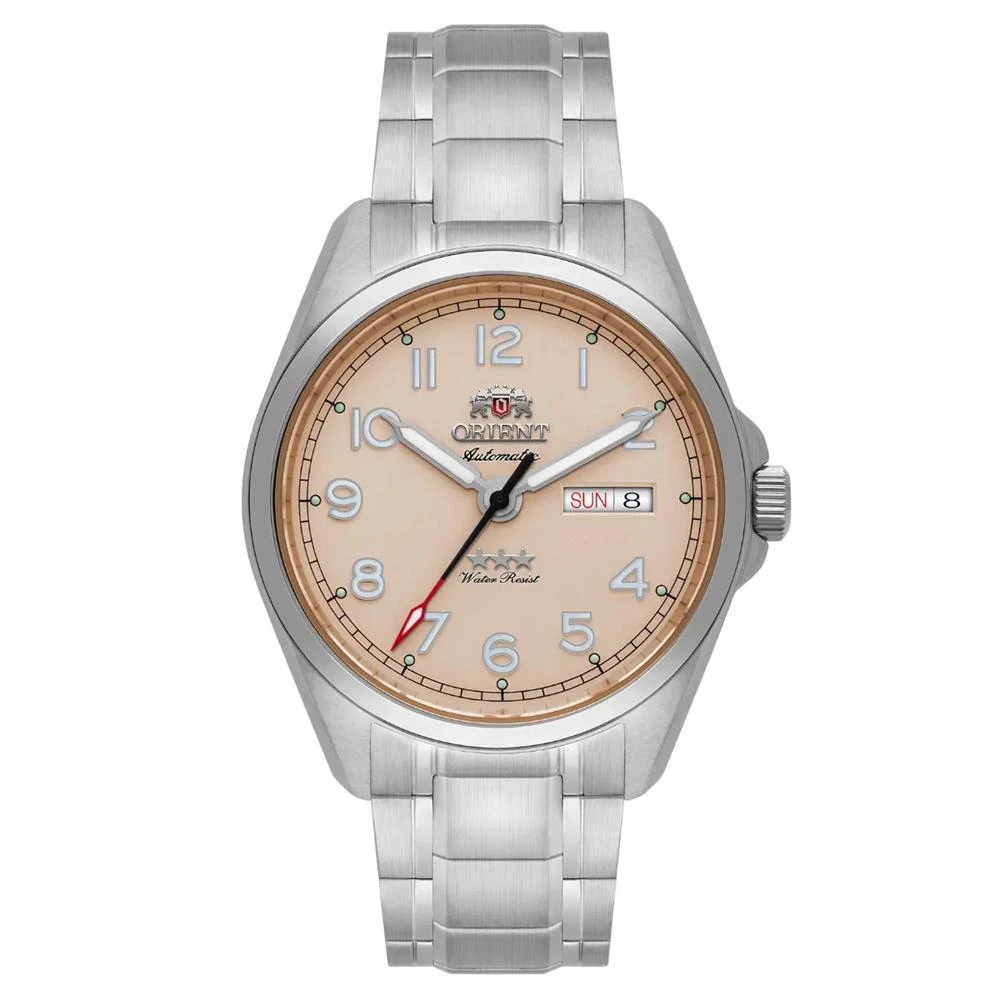 linha: Orient Automatic Três Estrelas Sport Airvidro: Safirafunções: Automático, Analógico, Calendário Mensal, Calendário Semanal com opção em Português e Inglês, Hacking (Ponteiro de segundos para no modo de acerto de horas), Enrolamento manual (Premite dar corda diretamente na coroa)resistência à água: 100 Mcaracterísticas: com caixa Aço inoxidável e pulseira Aço Inoxidáveldiâmetro da caixa: 4,0 cmalimentação do maquinário: Mecânico (Automático)