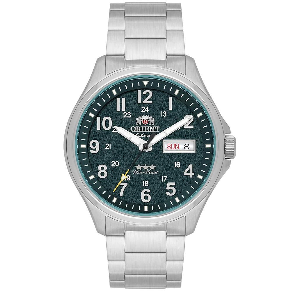 linha: Orient Automatic Três Estrelas Sport Airvidro: Safirafunções: Automático, Analógico, Calendário Mensal, Calendário Semanal com opção em Português e Inglês, Hacking (Ponteiro de segundos para no modo de acerto de horas), Enrolamento manual (Premite dar corda diretamente na coroa)resistência à água: 100 Mcaracterísticas: com caixa Aço inoxidável e pulseira Aço Inoxidáveldiâmetro da caixa: 4,1 cmalimentação do maquinário: Mecânico (Automático)