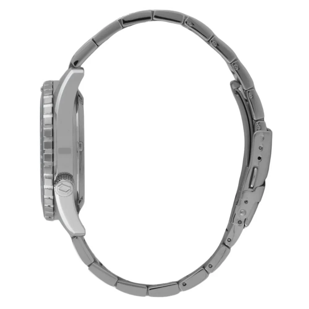 linha: Orient Automatic Três Estrelas Sport Seavidro: Cristais de Safirafunções: Automático, Analógico, Calendário Mensal, Hacking (Ponteiro de segundos para no modo de acerto de horas), Enrolamento manual (Premite dar corda diretamente na coroa), Coroa com escotilharesistência à água: 200 Mcaracterísticas: com caixa Aço inoxidável e pulseira Aço Inoxidáveldiâmetro da caixa: 4,2 cmfundo Rosqueadoalimentação do maquinário: Mecânico (Automático)