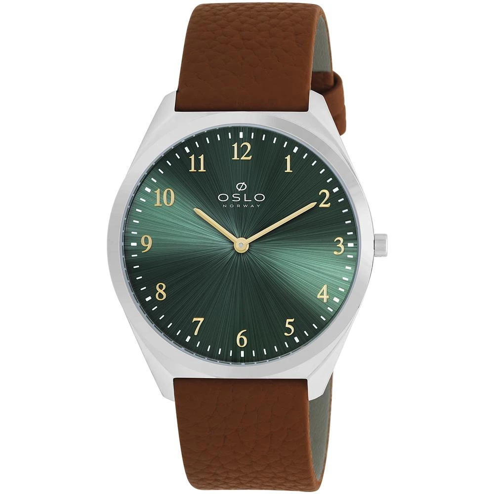 Caixa: AçoPulseira: Couro Legítimo MarromDiâmetro da caixa: 40MMAltura da caixa: 7MMVidro: SafiraResistência à água: 30mfunções: Analogico, SlimAlimentação do Maquinário: BateriaMostrador Verde com todos númerosGarantia de 1 ano