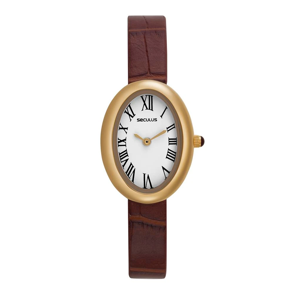 Vidro: Cristal MineralFunções: AnalógicoResistencia à água: 30 MCaracterísticas: com caixa de Metal e pulseira de Couro Ecológico CarameloDiâmetro da caixa: 2,5 cm x 3,3 cmFundo RosqueadoAlimentação do Maquinário: BateriaMostrador branco com algarismos romanosMecanismo JaponêsGarantia de 2 anos