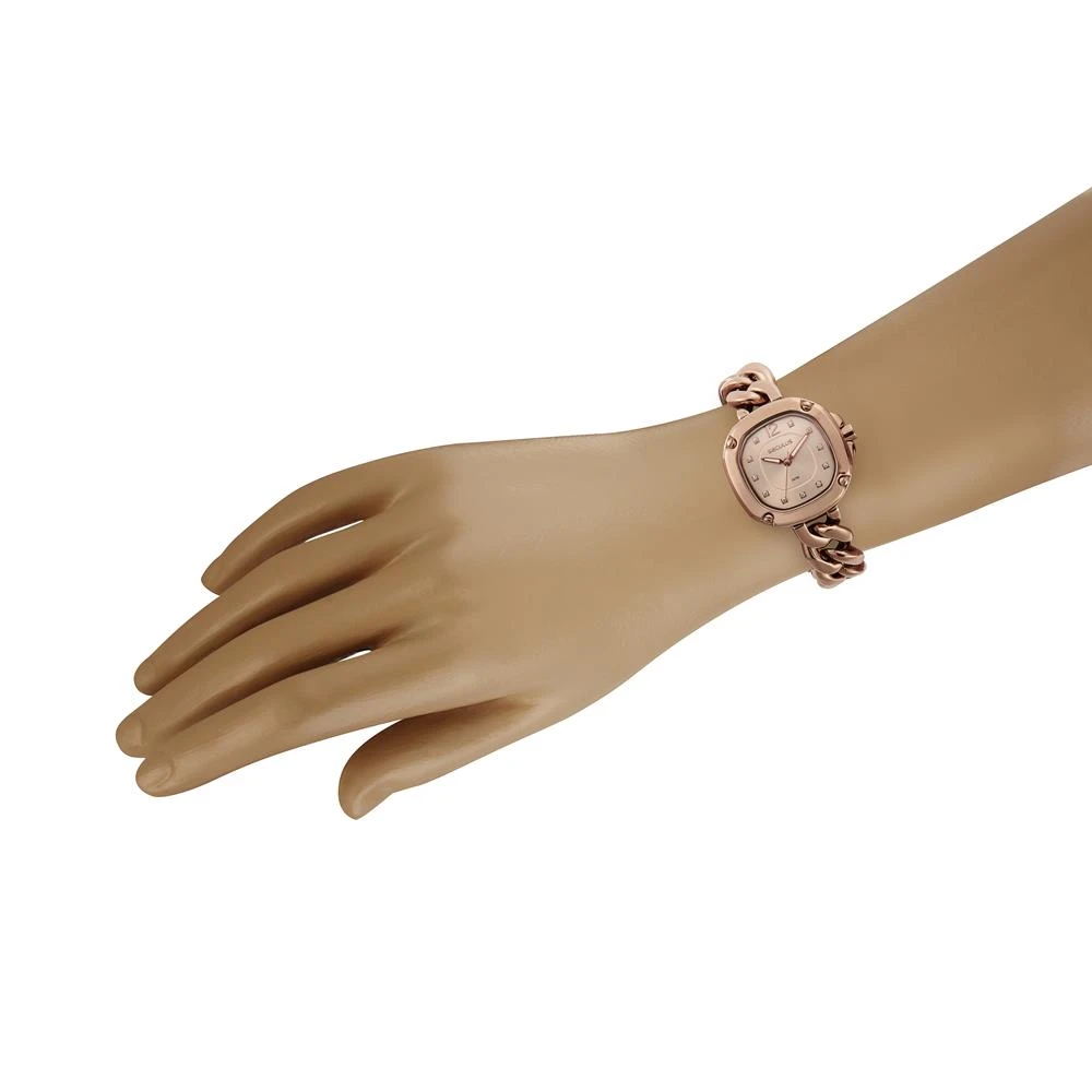 Vidro: Cristal MineralFunções: AnalógicoResistencia à água: 30 MCaracterísticas: com caixa de Metal e pulseira de Metal Estilo BraceleteDiâmetro da caixa: 3,2 cm x 3,2 cmFundo de PressãoAlimentação do Maquinário: BateriaMostrador Rosé com PedrasGarantia de 2 anos