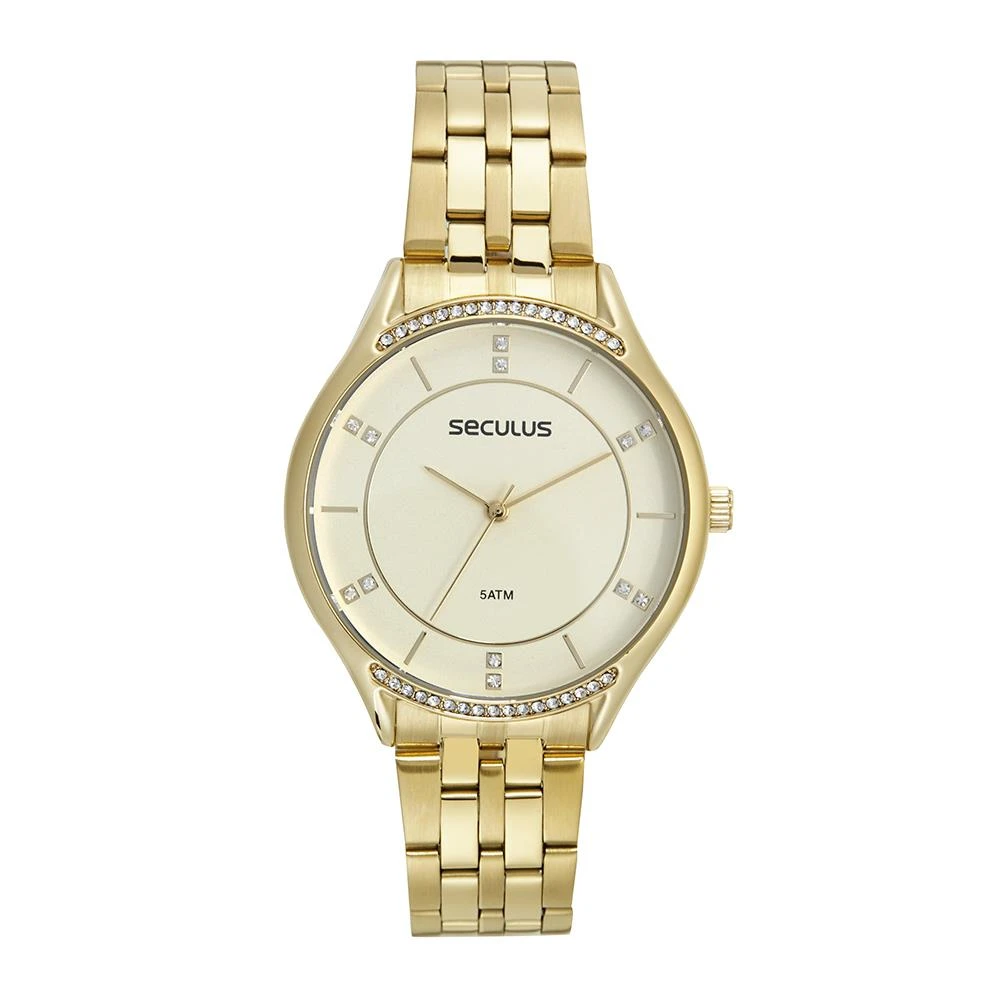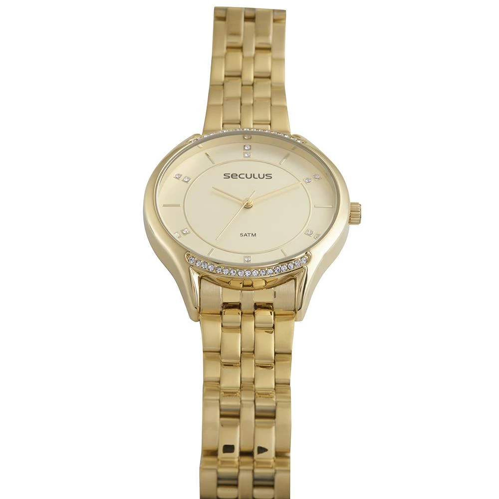 Vidro: Cristal MineralFunções: AnalógicoResistencia à água: 50 MCaracterísticas: com caixa de Metal Especial e pulseira de Aço InoxidávelDiâmetro da caixa: 4,0 cmFundo RosqueadoAlimentação do Maquinário: BateriaMostrador Champanhe com PedrasGarantia de 2 anos
