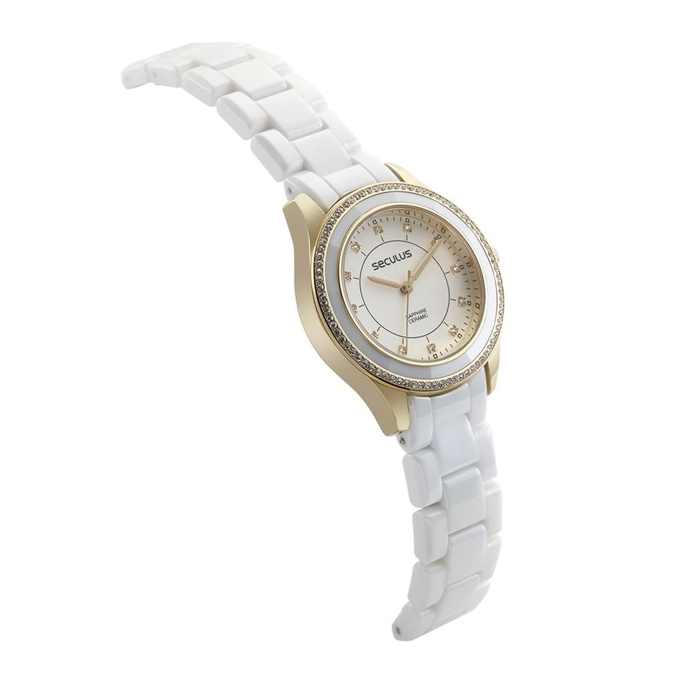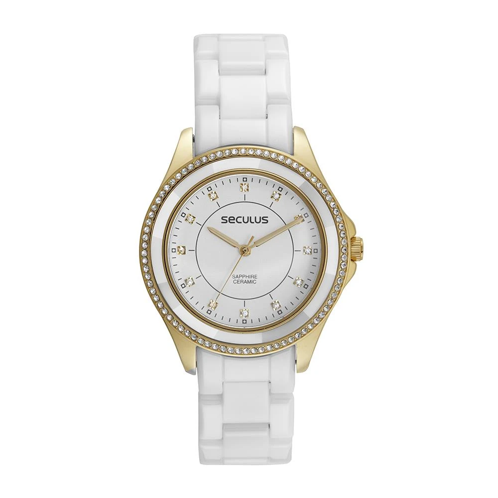 Vidro: SafiraFunções: AnalógicoResistencia à água: 50 MCaracterísticas: com caixa de Metal Especial e pulseira de Cerâmica BrancaDiâmetro da caixa: 3,8 cmFundo RosqueadoAlimentação do Maquinário: BateriaMostrador Prateado com PedrasGarantia de 2 anos