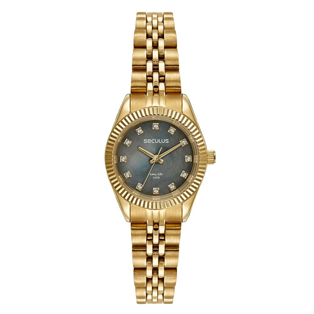 Vidro: Cristal MineralFunções: AnalógicoResistencia à água: 50 MCaracterísticas: com caixa de Aço e pulseira de AçoDiâmetro da caixa: 2,4 cmFundo RosqueadoAlimentação do Maquinário: BateriaMostrador Madreperola Grafite com pedrasLinha: Seculus Long LifeGarantia de 2 anos