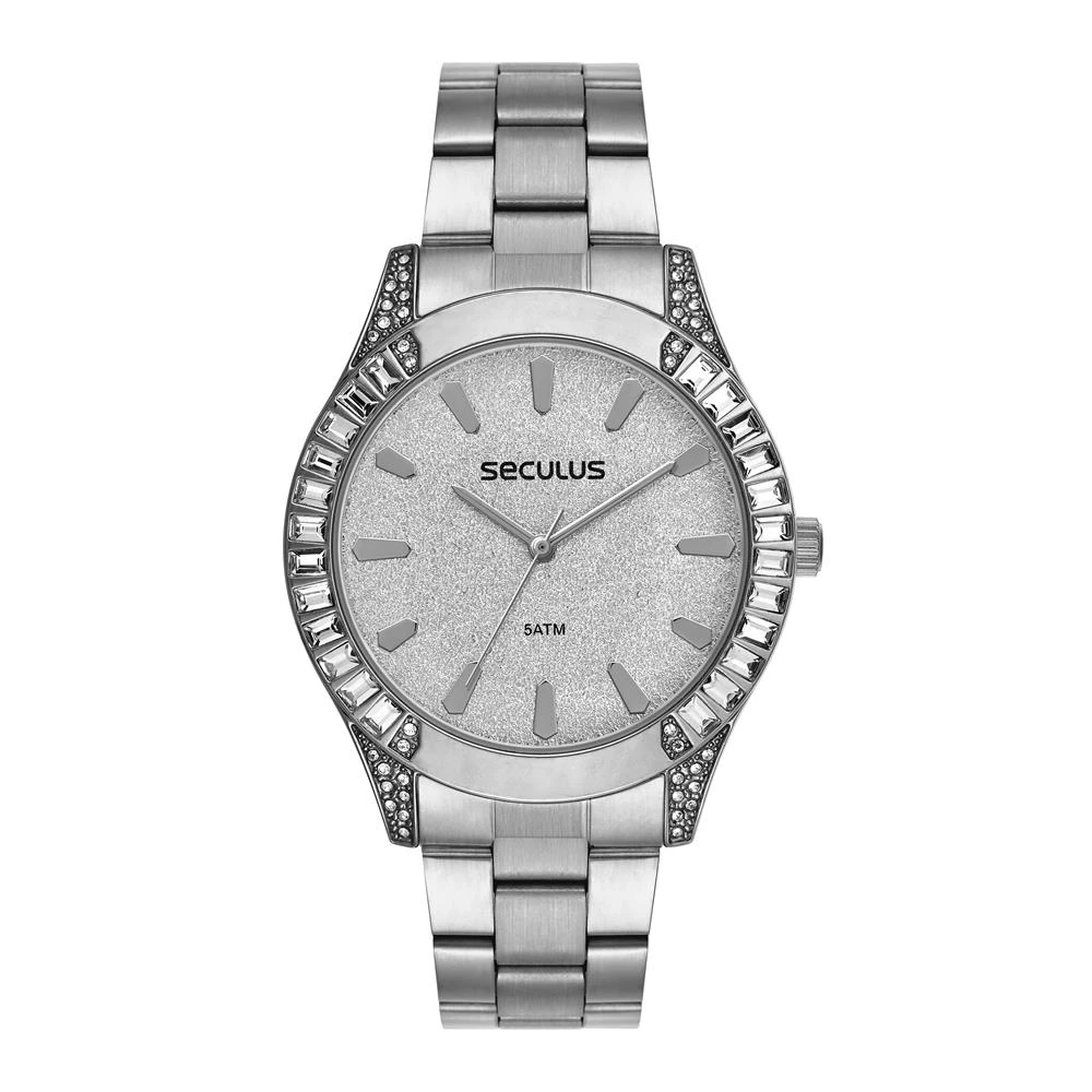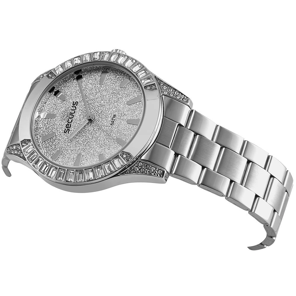 Vidro: Cristal MineralFunções: AnalógicoResistencia à água: 50 MCaracterísticas: com caixa de Metal Especial e pulseira de Aço InoxidávelDiâmetro da caixa: 4,2 cmFundo RosqueadoAlimentação do Maquinário: BateriaMostrador de Brilho PrateadoAro Fixo de PedrasGarantia de 2 anos