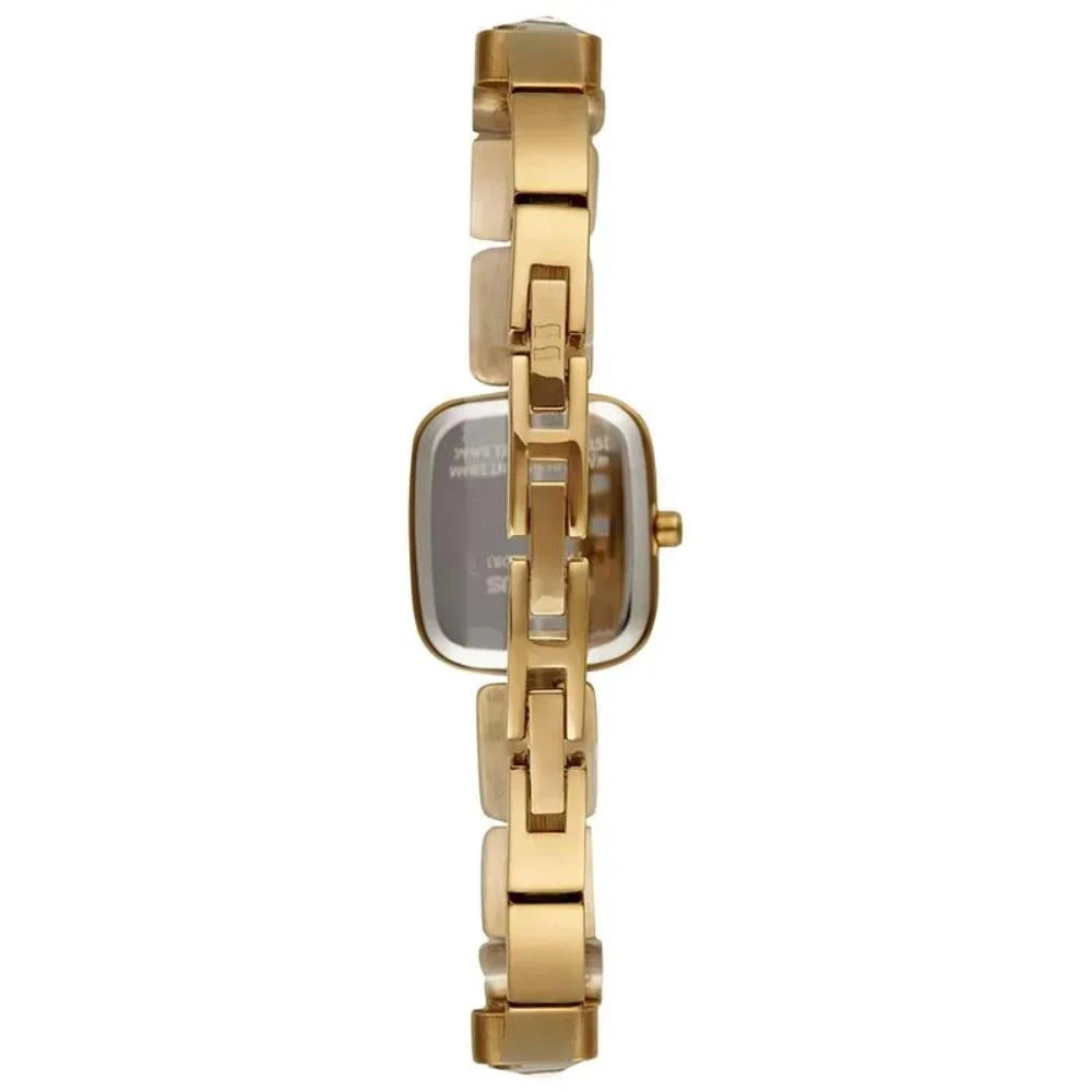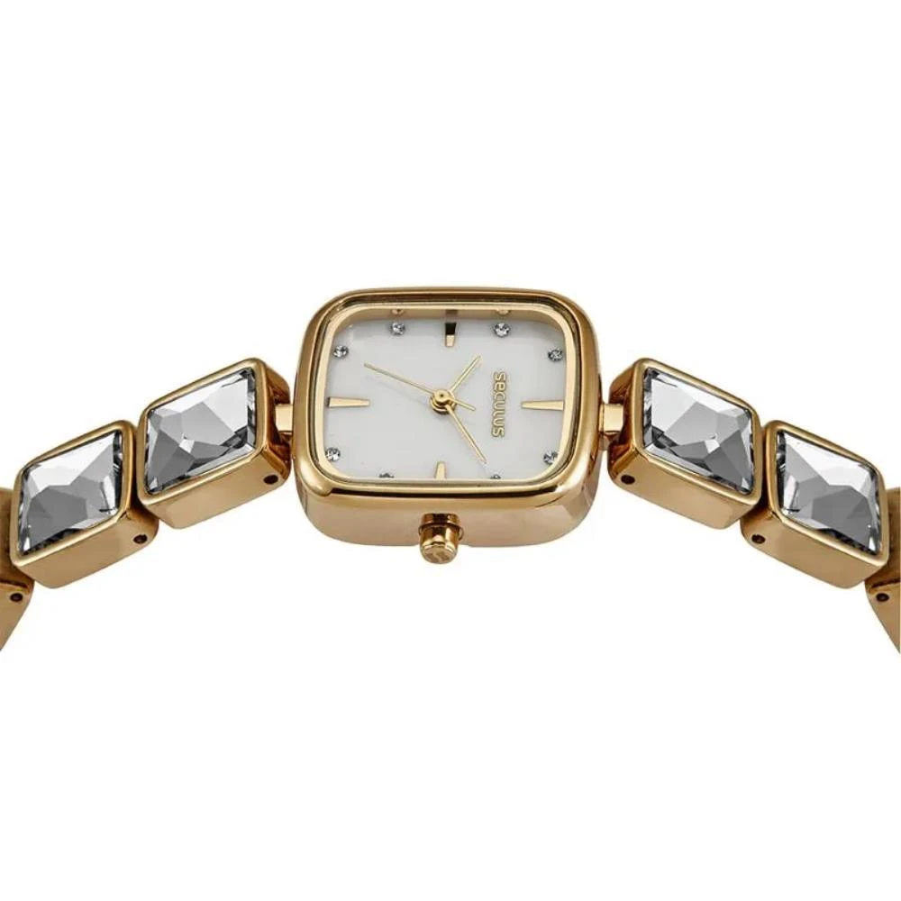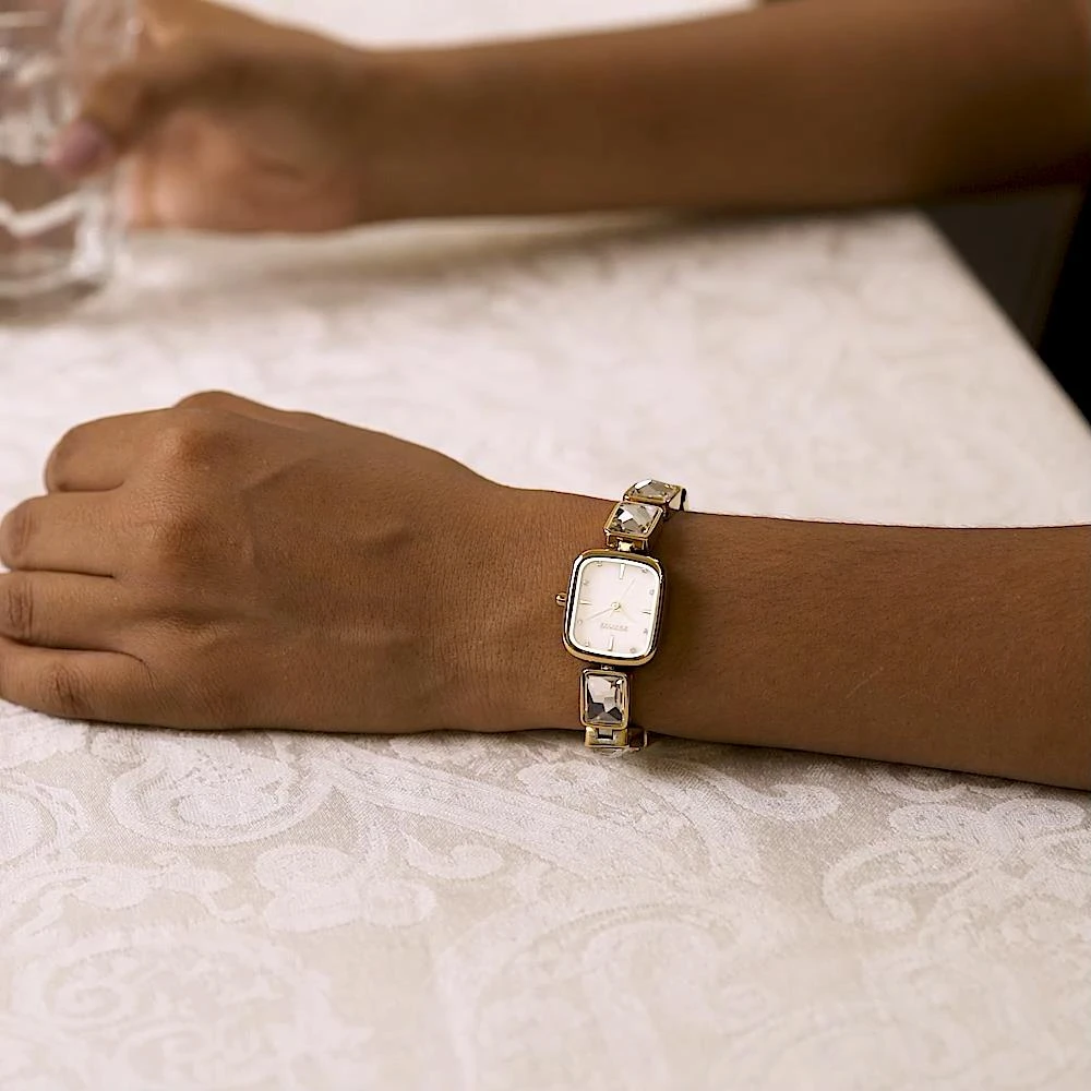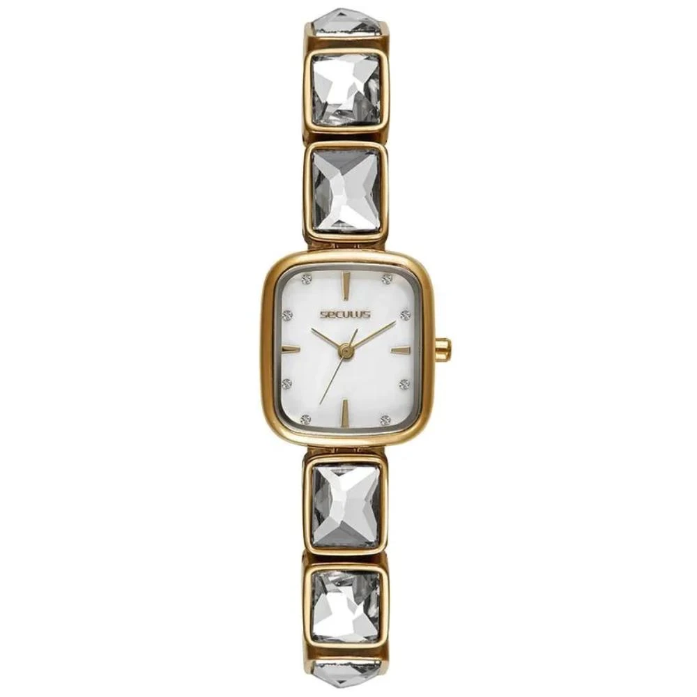 Vidro: Cristal MineralFunções: AnalógicoResistencia à água: 30 MCaracterísticas: com caixa de Metal e pulseira de Metal Estilo Bracelete com PedrasDiâmetro da caixa: 2,2 cm x 2,4 cmFundo de PressãoAlimentação do Maquinário: BateriaMostrador Madreperola Branca com PedrasMecanismo JaponêsGarantia de 2 anos