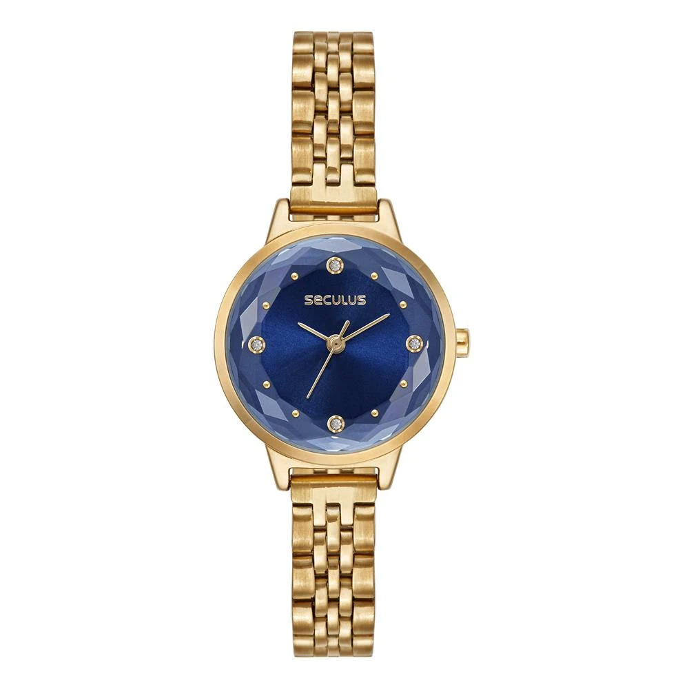 Vidro: Cristal Mineral FacetadoFunções: AnalógicoResistencia à água: 50 MCaracterísticas: com caixa de Metal Especial e pulseira de Aço InoxidávelDiâmetro da caixa: 2,8 cmFundo RosqueadoAlimentação do Maquinário: BateriaMostrador Azul com pedrasMovimento JaponêsGarantia de 2 anos