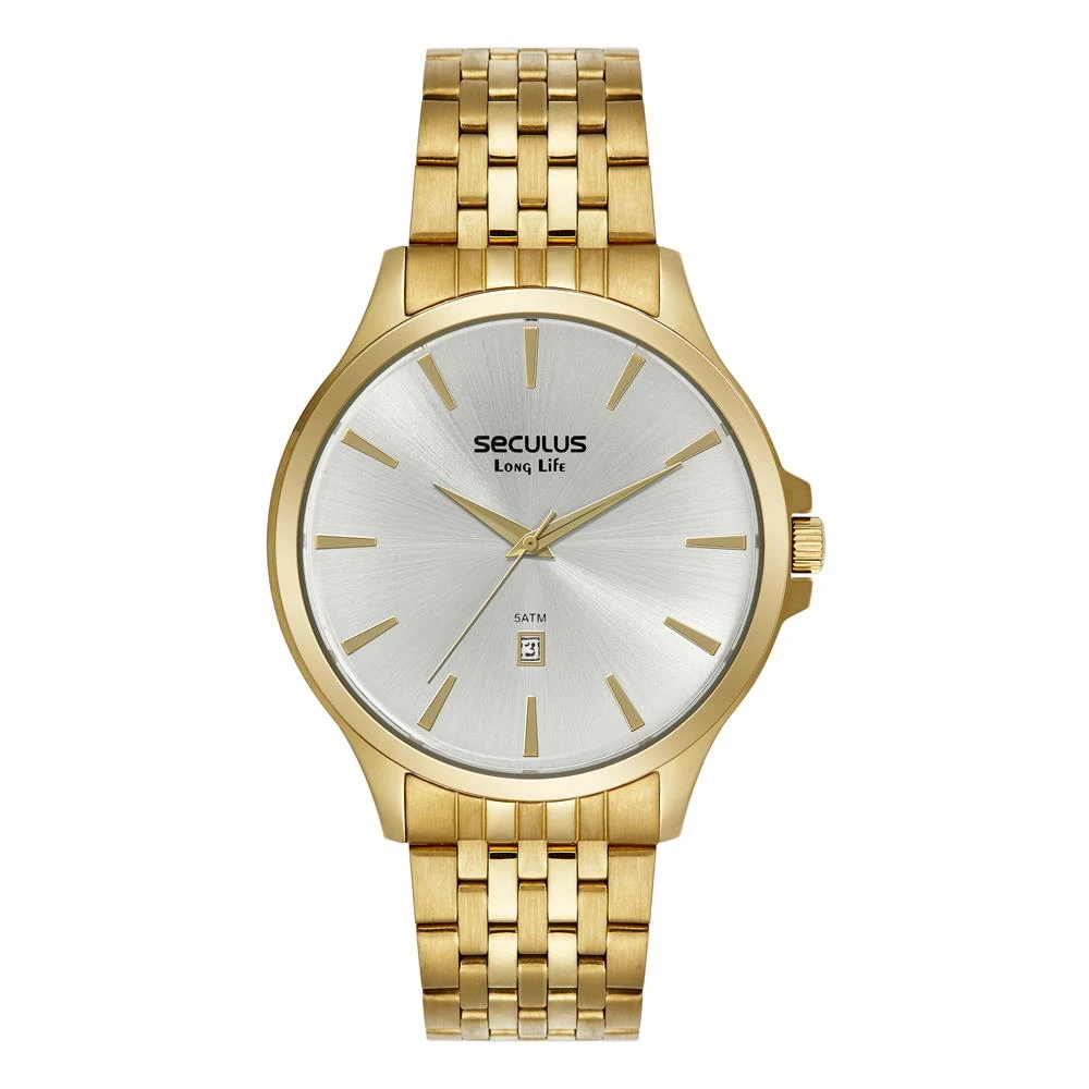 Vidro: Cristal MineralFunções: Analógico, CalendárioResistencia à água: 50 MCaracterísticas: com caixa de Aço inoxidável e pulseira de Aço InoxidávelDiâmetro da caixa: 4,5 cmFundo de RoscaLinha Long LifeAlimentação do Maquinário: BateriaMostrador PrateadoGarantia de 2 anos