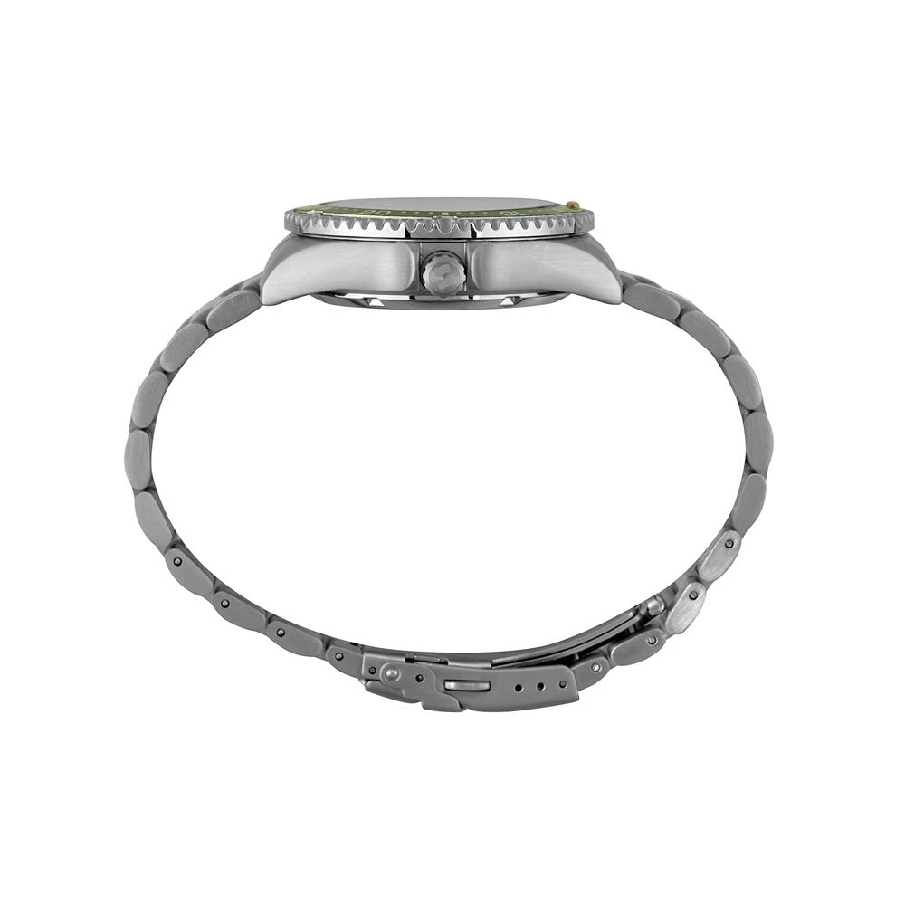 Vidro: Cristal MineralFunções: Automático, Analógico, Calendário Duplo (Mensal e Semanal em Inglês e Espanhol)Resistencia à água: 100 MCaracterísticas: com caixa de Aço inoxidável e pulseira de Aço InoxidávelDiâmetro da caixa: 4,2 cmFundo RosqueadoCom fundo de vidro que permite a visualização do maquinário em funcionamentoLinha: Seculus AutomaticAlimentação do Maquinário: Mecânico (Automático, Corda).Mostrador VerdeAro Fixo VerdeGarantia de 2 anos