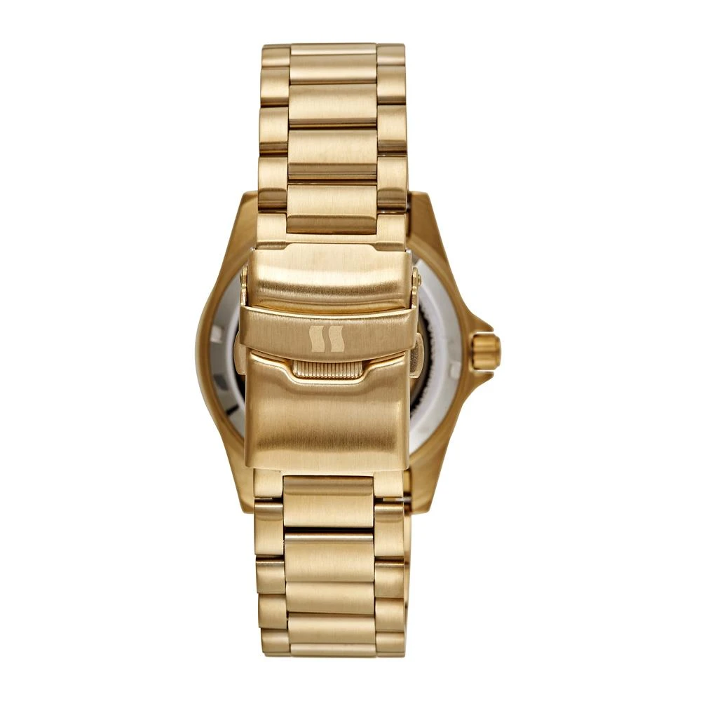 Vidro: Cristal MineralFunções: Automático, Analógico, Calendário Duplo (Mensal e Semanal em Inglês e Espanhol)Resistencia à água: 100 MCaracterísticas: com caixa de Aço inoxidável e pulseira de Aço InoxidávelDiâmetro da caixa: 4,2 cmFundo RosqueadoCom fundo de vidro que permite a visualização do maquinário em funcionamentoLinha: Seculus AutomaticAlimentação do Maquinário: Mecânico (Automático, Corda).Mostrador DouradoAro Fixo PretoGarantia de 2 anos