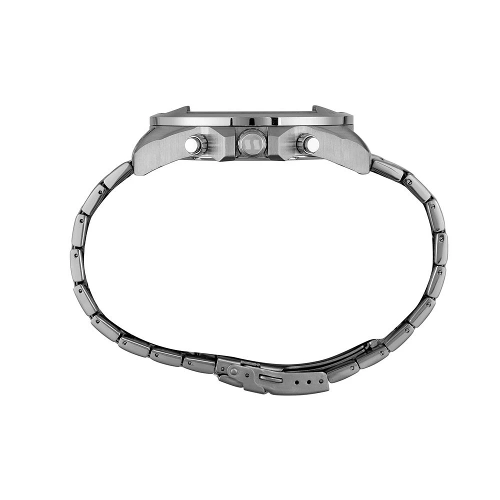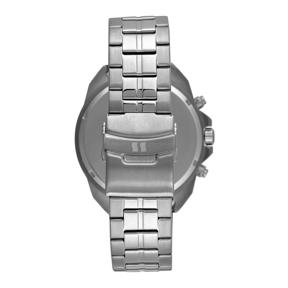 Vidro: Cristal MineralFunções: Cronógrafo, Calendário, AnalógicoResistencia à água: 100 MCaracterísticas: com caixa de Aço inoxidável e pulseira de Aço InoxidávelDiâmetro da caixa: 5,2 cmFundo de RoscaAlimentação do Maquinário: BateriaMostrador Azul