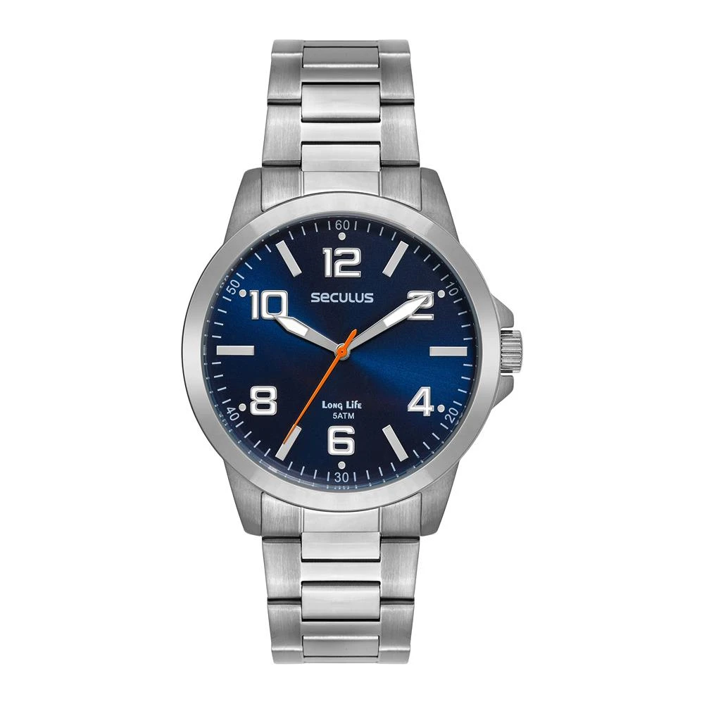 Vidro: Cristal MineralFunções: AnalógicoResistencia à água: 50 MCaracterísticas: com caixa de Aço inoxidável e pulseira de Aço InoxidávelDiâmetro da caixa: 4,4 cmFundo de RoscaLinha Long LifeAlimentação do Maquinário: BateriaMostrador Azul com númerosGarantia de 2 anos