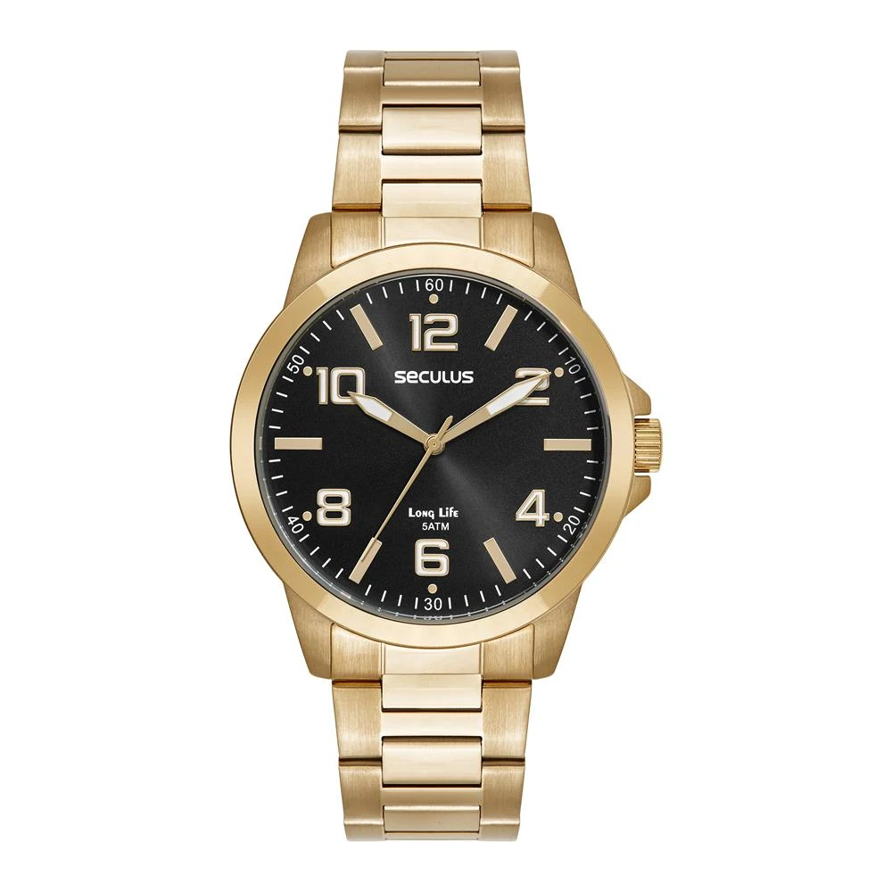 Vidro: Cristal MineralFunções: AnalógicoResistencia à água: 50 MCaracterísticas: com caixa de Aço inoxidável e pulseira de Aço InoxidávelDiâmetro da caixa: 4,4 cmFundo de RoscaLinha Long LifeAlimentação do Maquinário: BateriaMostrador Preto com númerosGarantia de 2 anos