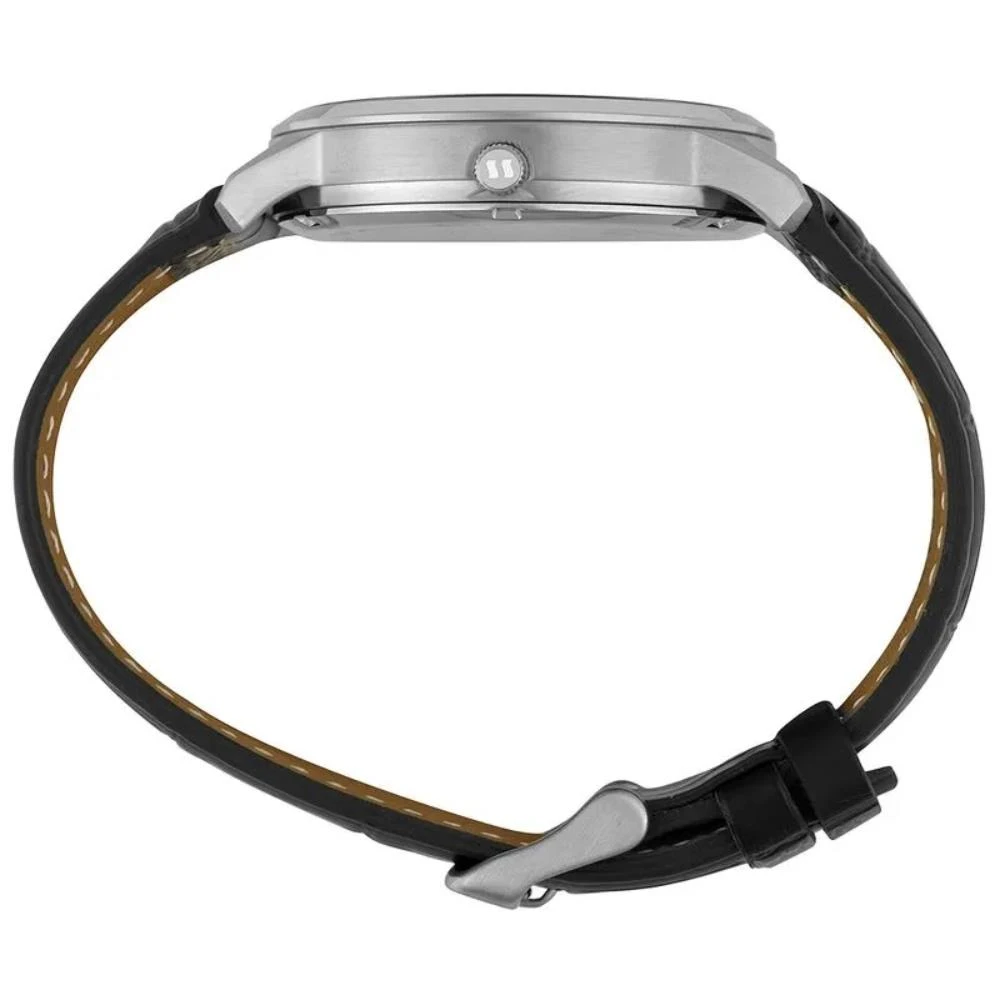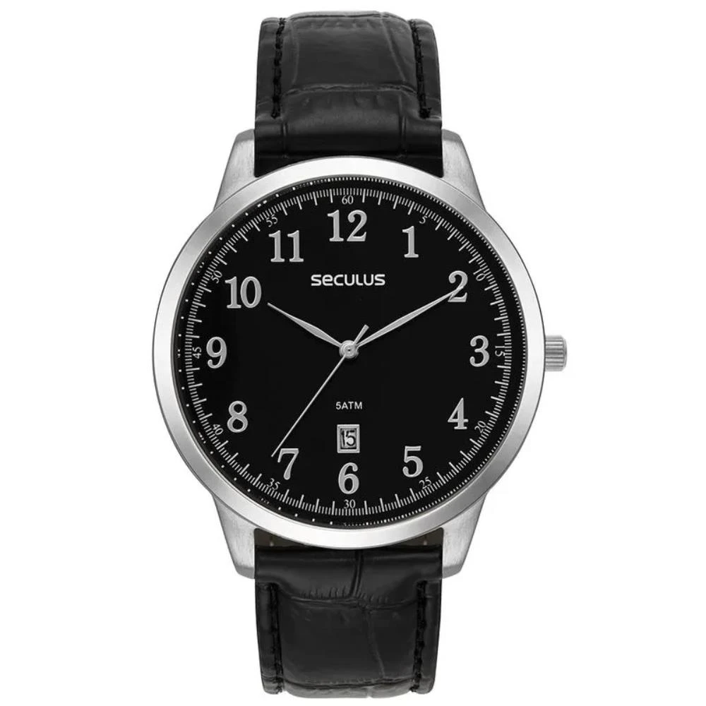 Vidro: Cristal MineralFunções: Analógico, CalendárioResistencia à água: 50 MCaracterísticas: com caixa de Aço inoxidável e pulseira de Couro Legítimo PretoDiâmetro da caixa: 4,2 cmFundo de RoscaAlimentação do Maquinário: BateriaMostrador Preto com Todos os NúmerosGarantia de 2 anos