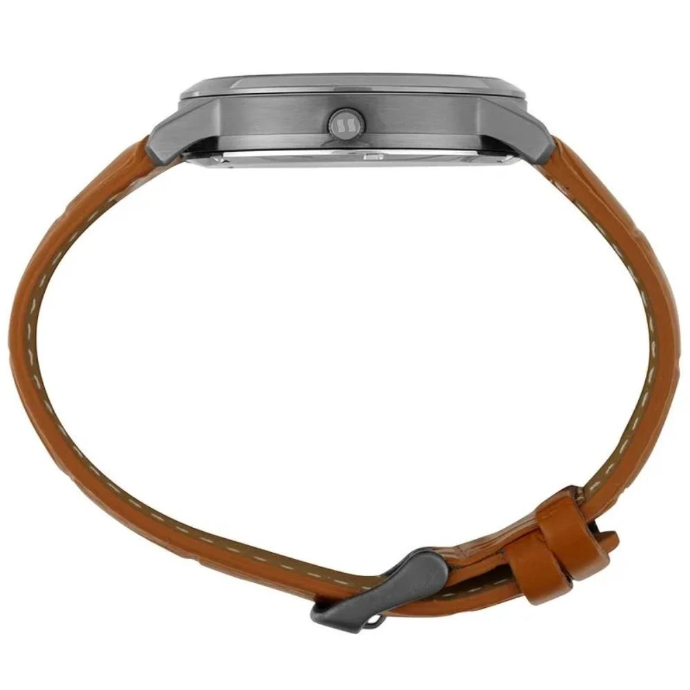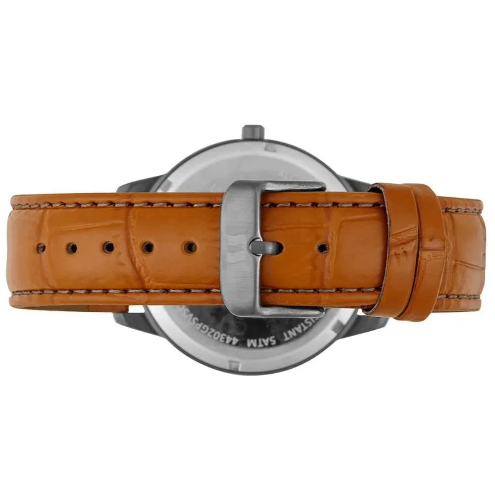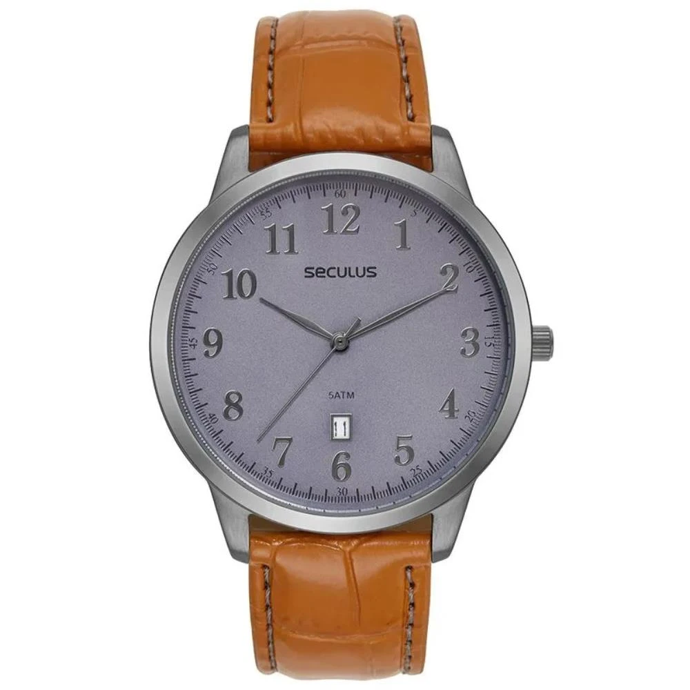 Vidro: Cristal MineralFunções: Analógico, CalendárioResistencia à água: 50 MCaracterísticas: com caixa de Aço inoxidável e pulseira de Couro Legítimo CarameloDiâmetro da caixa: 4,2 cmFundo de RoscaAlimentação do Maquinário: BateriaMostrador Grafite com Todos os NúmerosGarantia de 2 anos