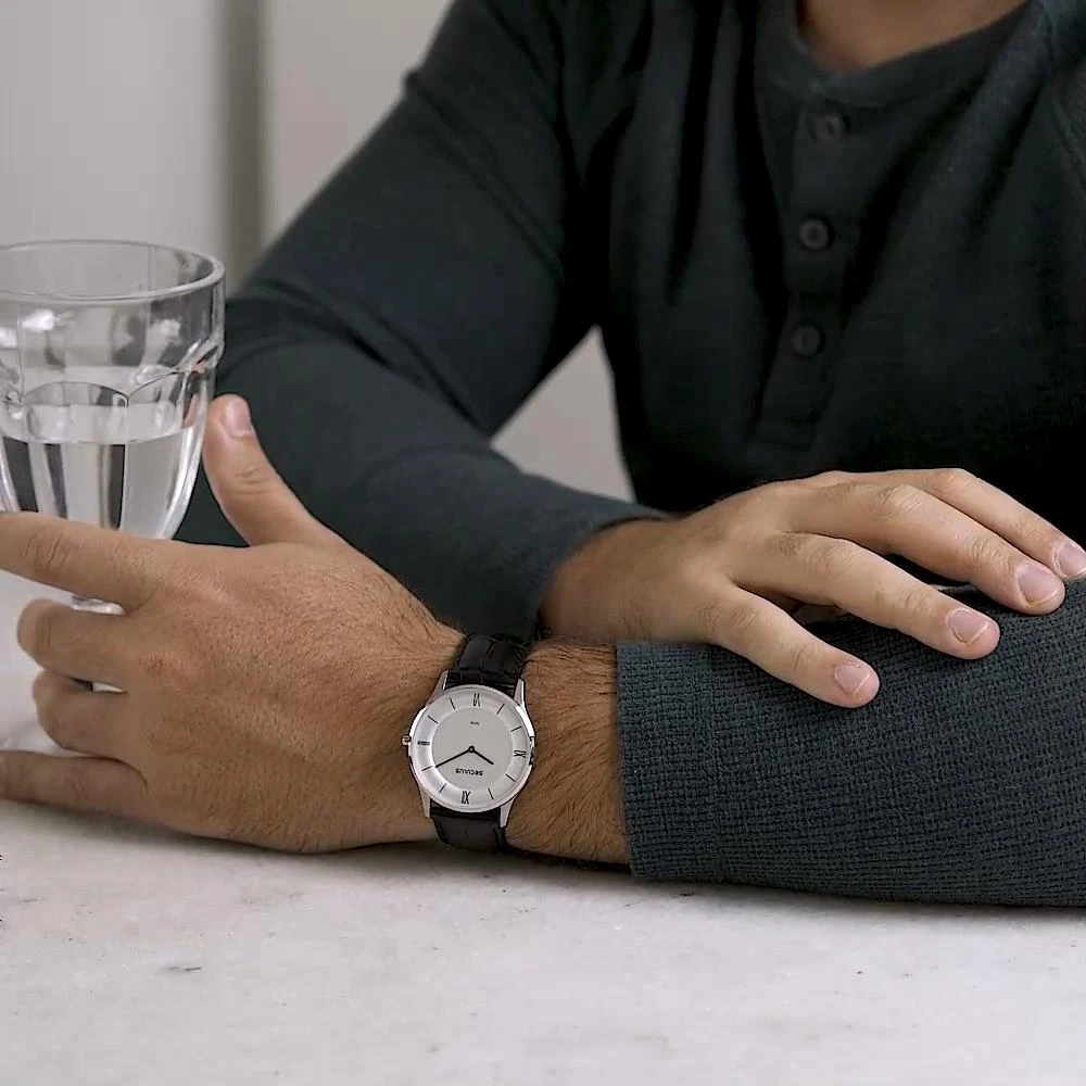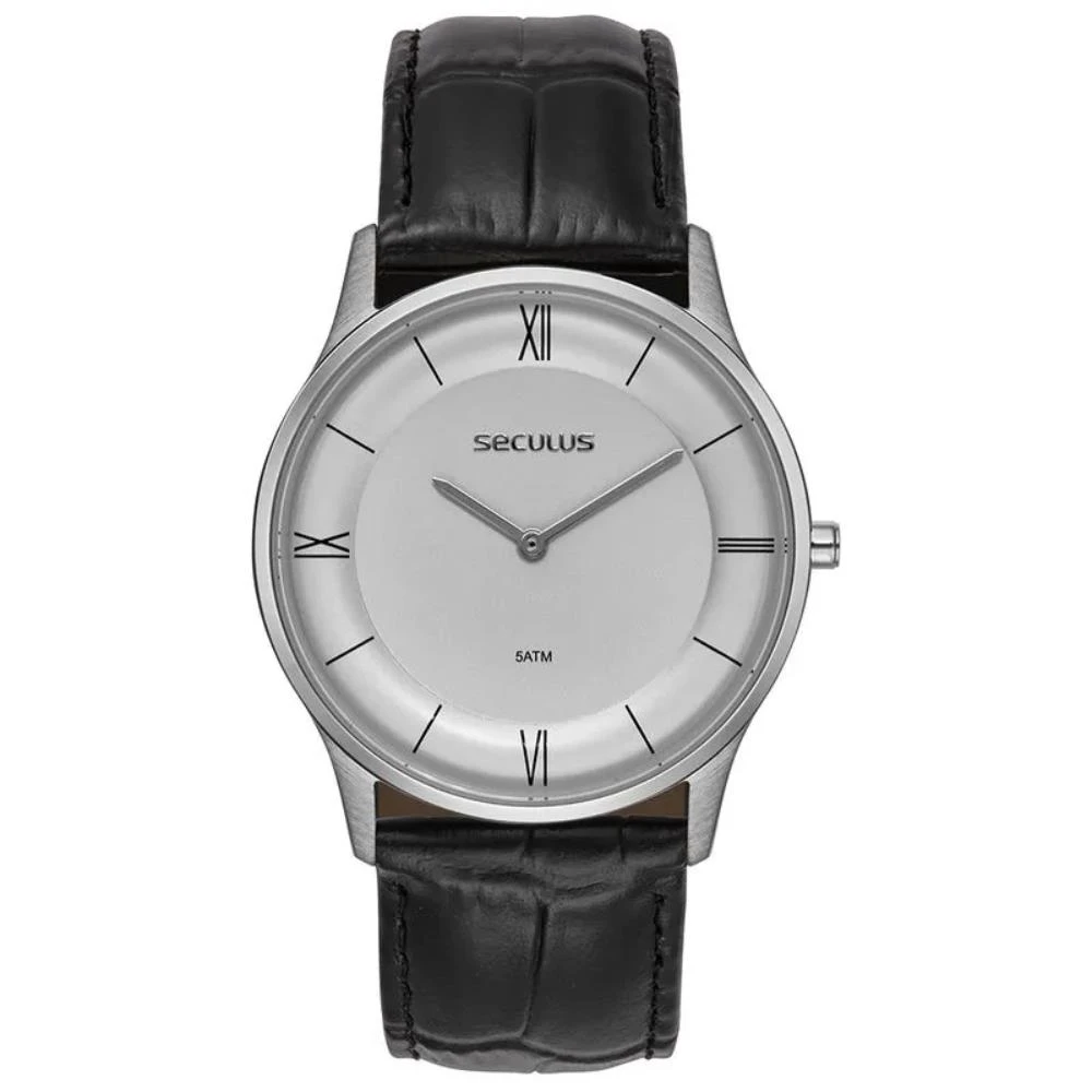 Vidro: Cristal MineralFunções: Analógico, SlimResistencia à água: 50 MCaracterísticas: com caixa de Aço inoxidável e pulseira de Couro Legítimo PretoDiâmetro da caixa: 4,0 cmEspessura da caixa: 8 mmFundo RosqueadoAlimentação do Maquinário: BateriaMostrador Prateado com algarismos romanosGarantia de 2 anos