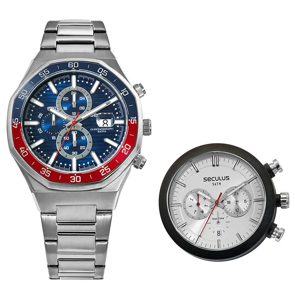 Funções: Mostrador 1 (Cronógrafo, Calendário, Analógico), Mostrador 2 (Analógico, Dual Time, Calendário)