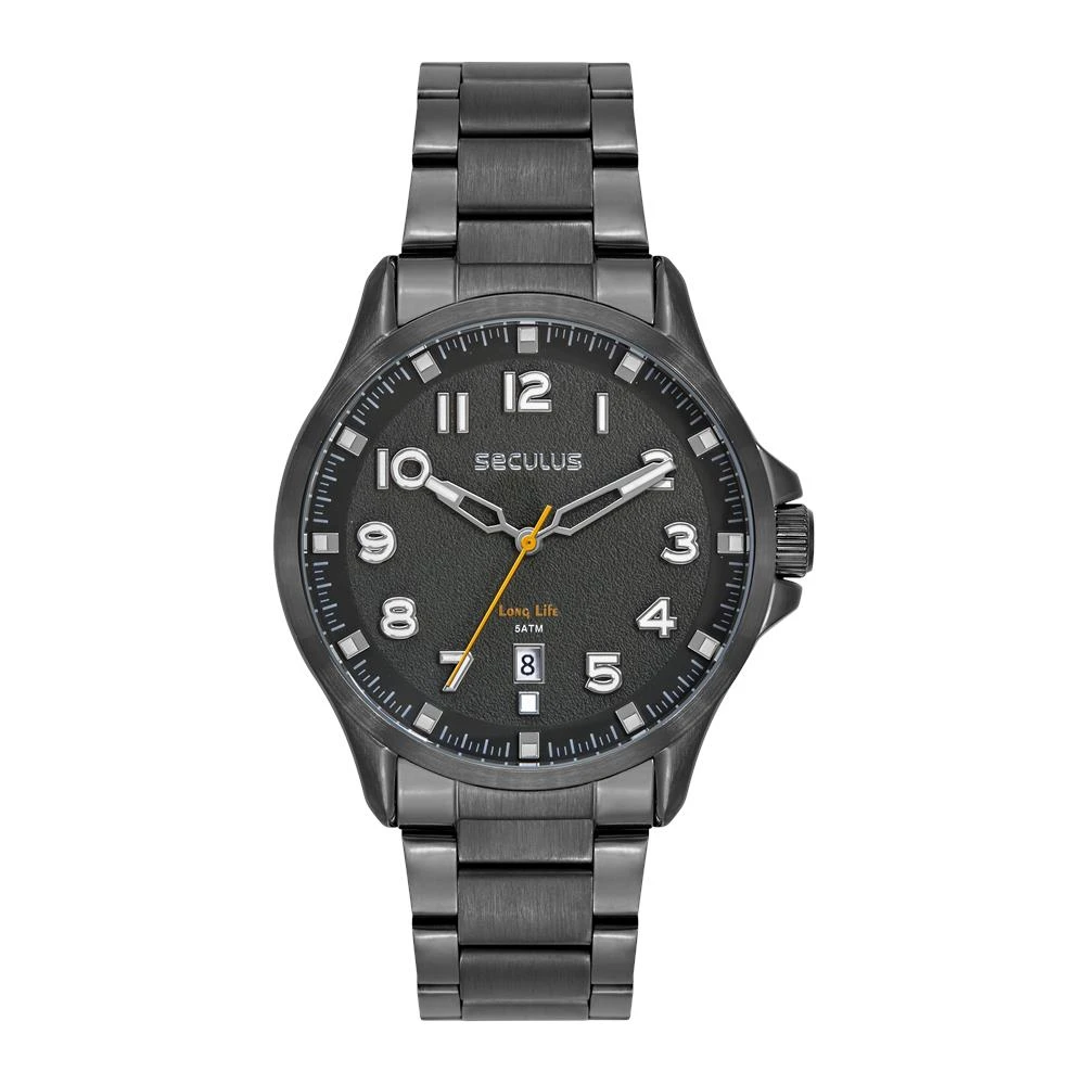 Vidro: Cristal MineralFunções: Analógico, CalendárioResistencia à água: 50 MCaracterísticas: com caixa de Aço inoxidável e pulseira de Aço InoxidávelDiâmetro da caixa: 4,3 cmFundo de RoscaLinha Long LifeAlimentação do Maquinário: BateriaMostrador Grafite com númerosGarantia de 2 anos
