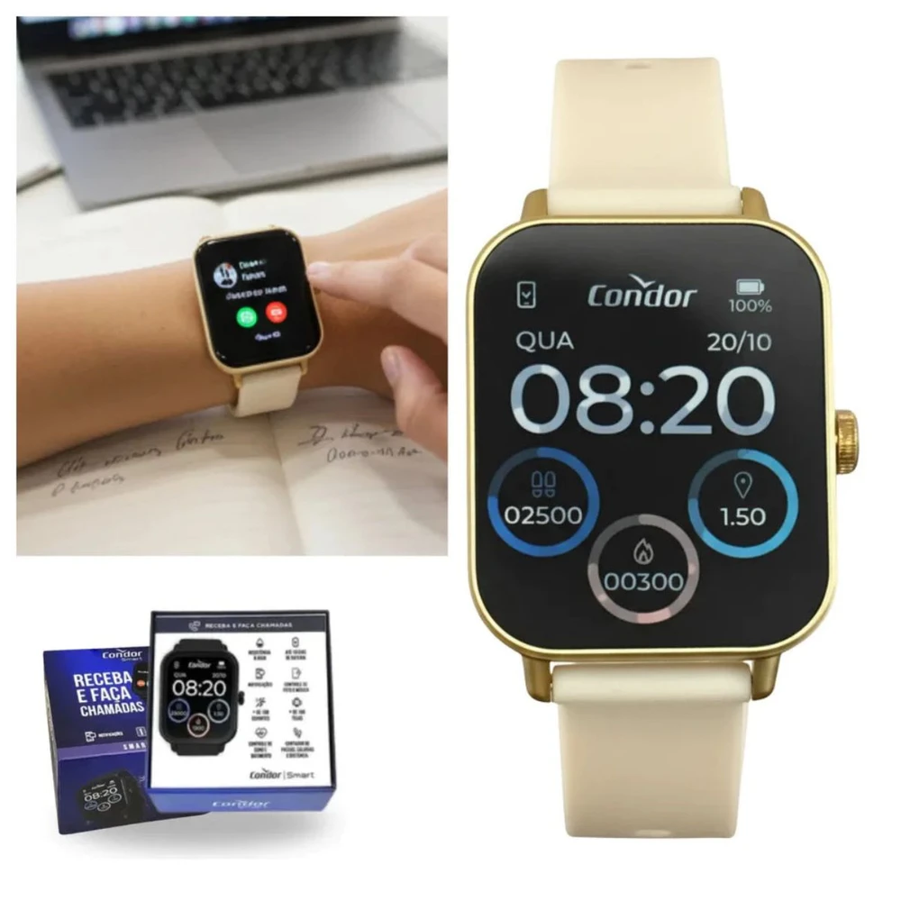 O Smartwatch Condor é a escolha perfeita para quem busca unir funcionalidade e estilo. Com visual moderno, ele acompanha sua rotina, monitora sua saúde e ainda mantém você conectado com notificações direto no pulso. Ideal para quem vive em movimento, o modelo oferece excelente custo-benefício com recursos que facilitam seu dia a dia, seja no trabalho, academia ou lazer.