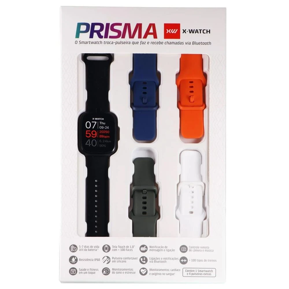 - Display Touchscreen 1,8 Polegadas- Resistência IP 68- Autonomia da Bateria de até 5 a 7 dias (Uso Moderado)- Carregamento Magnético Conexão USB- Compatível com bluetooth 5.3- Conecta com Android- Conecta com IOS- 5 Pulseiras de Silicone Preta, Branca, Azul, Laranja e Verde Militar (De fácil troca)- Fecho: Fivela- Caixa de Resina Preta de 38 x 44 mm de diâmetro e 13 mm de espessura- 12 meses de garantia