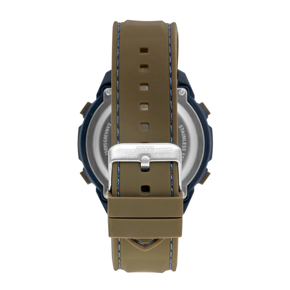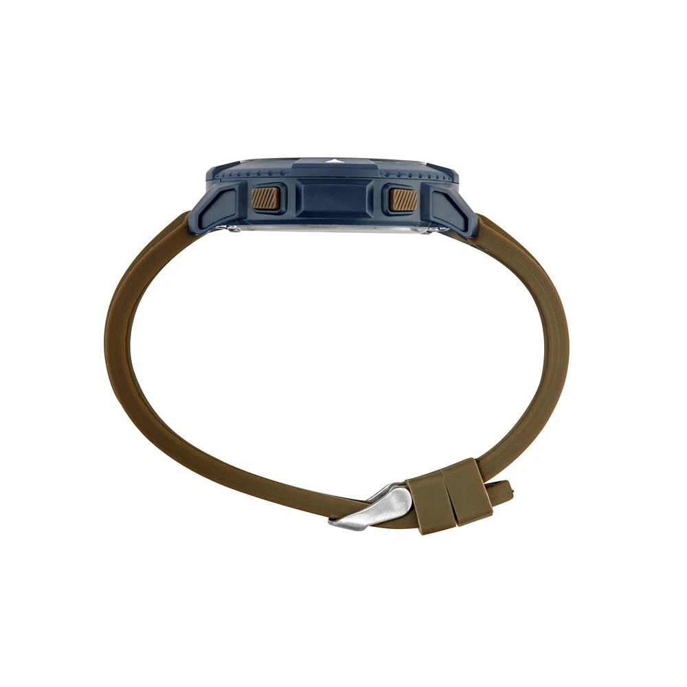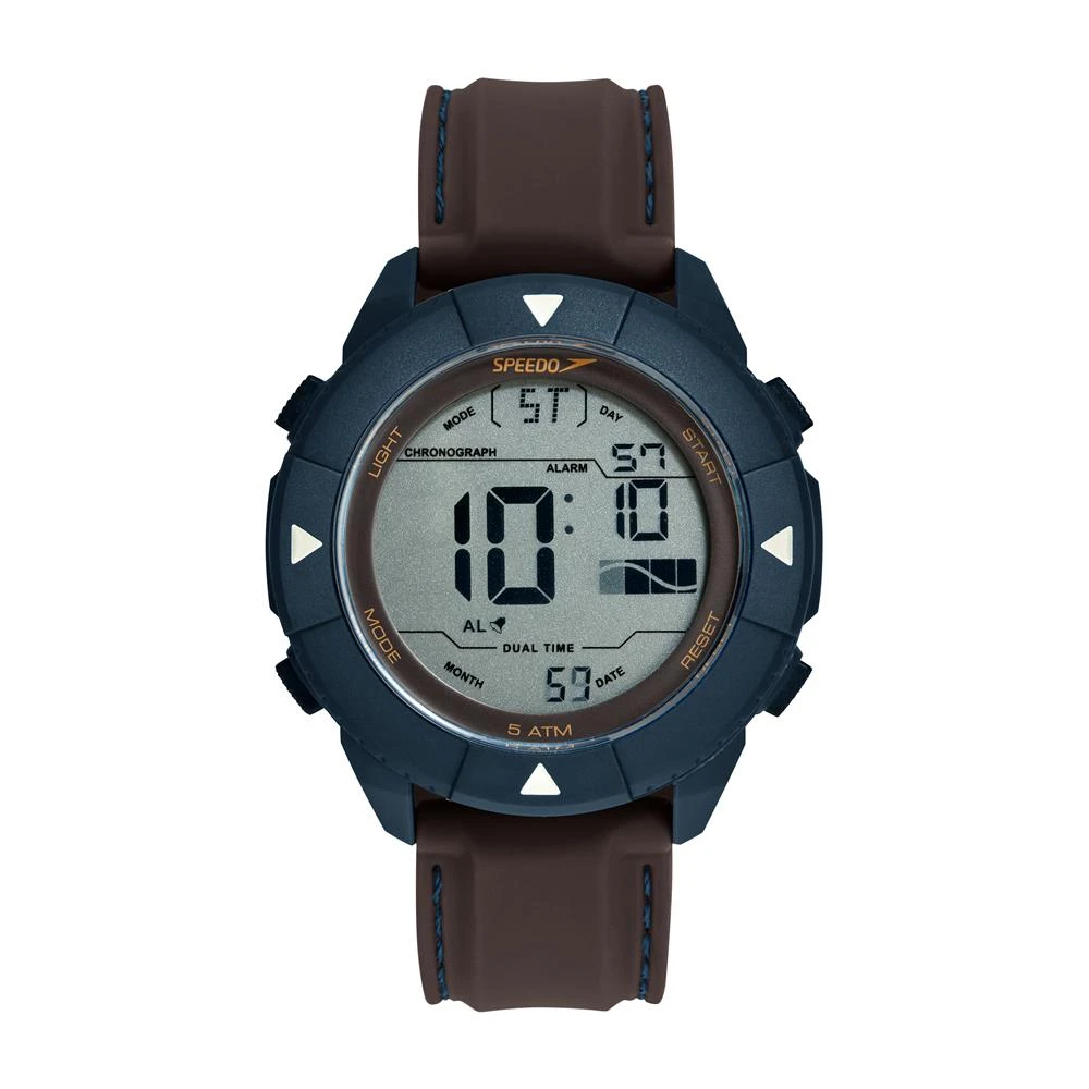 Funções: Digital, Iluminação, Alarme, Cronógrafo, Timer, Dual TimeResistência à Água: 50 mDiâmetro da Caixa: 51 mmCaracterísticas: com caixa em Policarbonato Azul e pulseira em Silicone MarromFundo ParafusadoVidro: AcrílicoAlimentação do Maquinário: BateriaGarantia de 1 ano