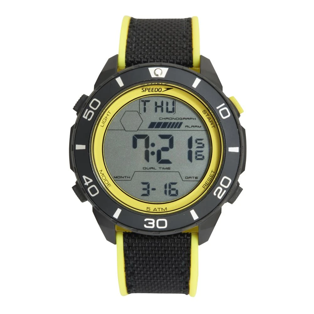 Funções: Digital, Iluminação, Alarme, Cronógrafo, Timer, Dual TimeResistência à Água: 50 mDiâmetro da Caixa: 51 mmCaracterísticas: com caixa em Policarbonato Preto e pulseira em Silicone Amarelo com detalhe em nylon PretoFundo ParafusadoVidro: AcrílicoAlimentação do Maquinário: BateriaAro Fixo PretoGarantia de 1 ano