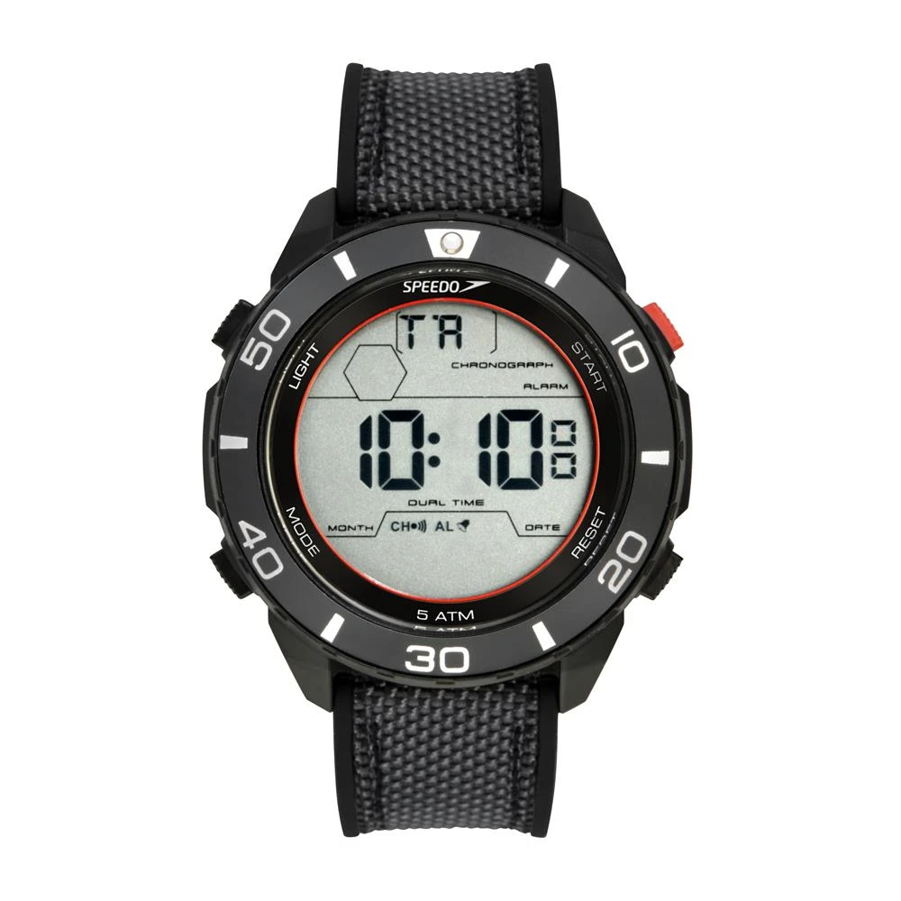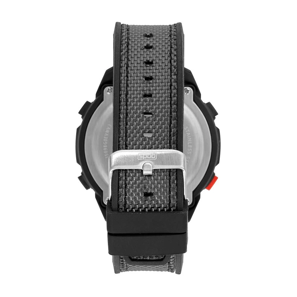 Funções: Digital, Iluminação, Alarme, Cronógrafo, Timer, Dual TimeResistência à Água: 50 mDiâmetro da Caixa: 51 mmCaracterísticas: com caixa em Policarbonato Preto e pulseira em Silicone Preto com detalhe em nylon CinzaFundo ParafusadoVidro: AcrílicoAlimentação do Maquinário: BateriaAro Fixo PretoGarantia de 1 ano