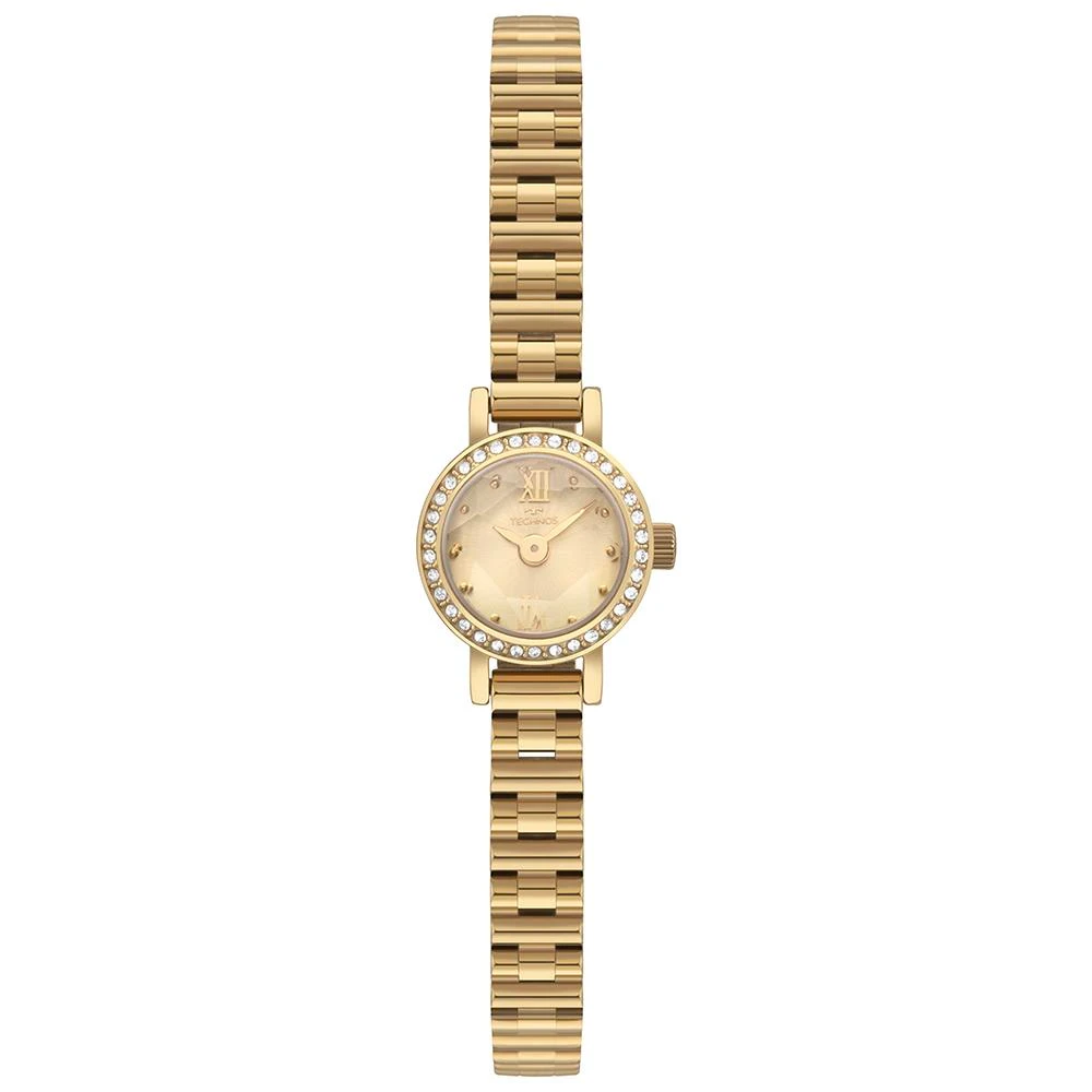 Caixa de Aço InoxPulseira de Aço InoxFundo de PressãoResistente à Água 5 AtmDiâmetro / Largura da Caixa: 15.00 MMVidro de Cristal Mineral FacetadoFunções: AnalógicoAlimentação do Maquinário: BateriaMostrador dourado com algarismos romanosGarantia de 1 Ano