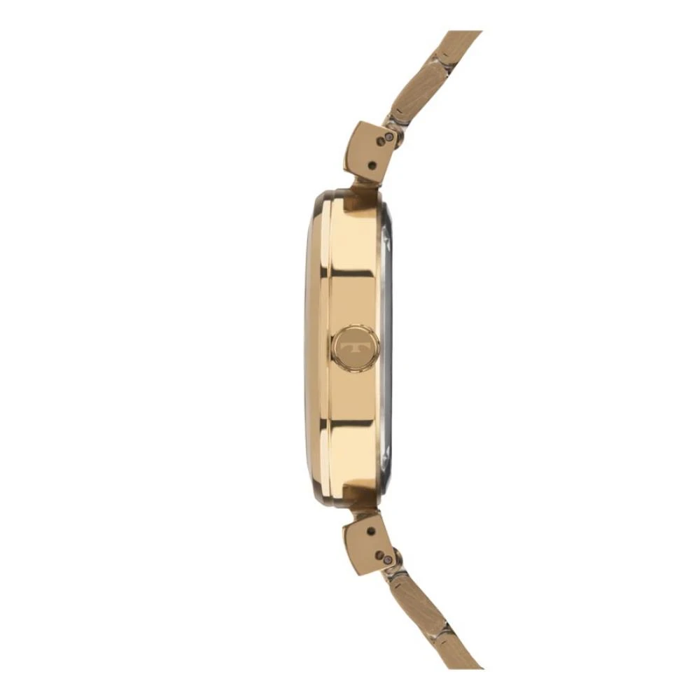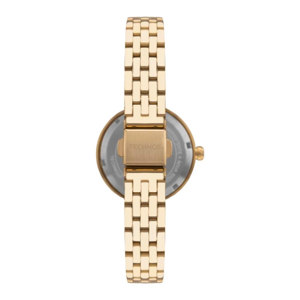 Caixa de Aço InoxPulseira de Aço InoxFundo RosqueadoResistente à Água 5 AtmDiâmetro / Largura da Caixa: 34.00 MMVidro de Cristal MineralFunções: AnalógicoMaquina JaponesaAlimentação do Maquinário: BateriaMostrador Dourado EspelhadoGarantia de 1 Ano