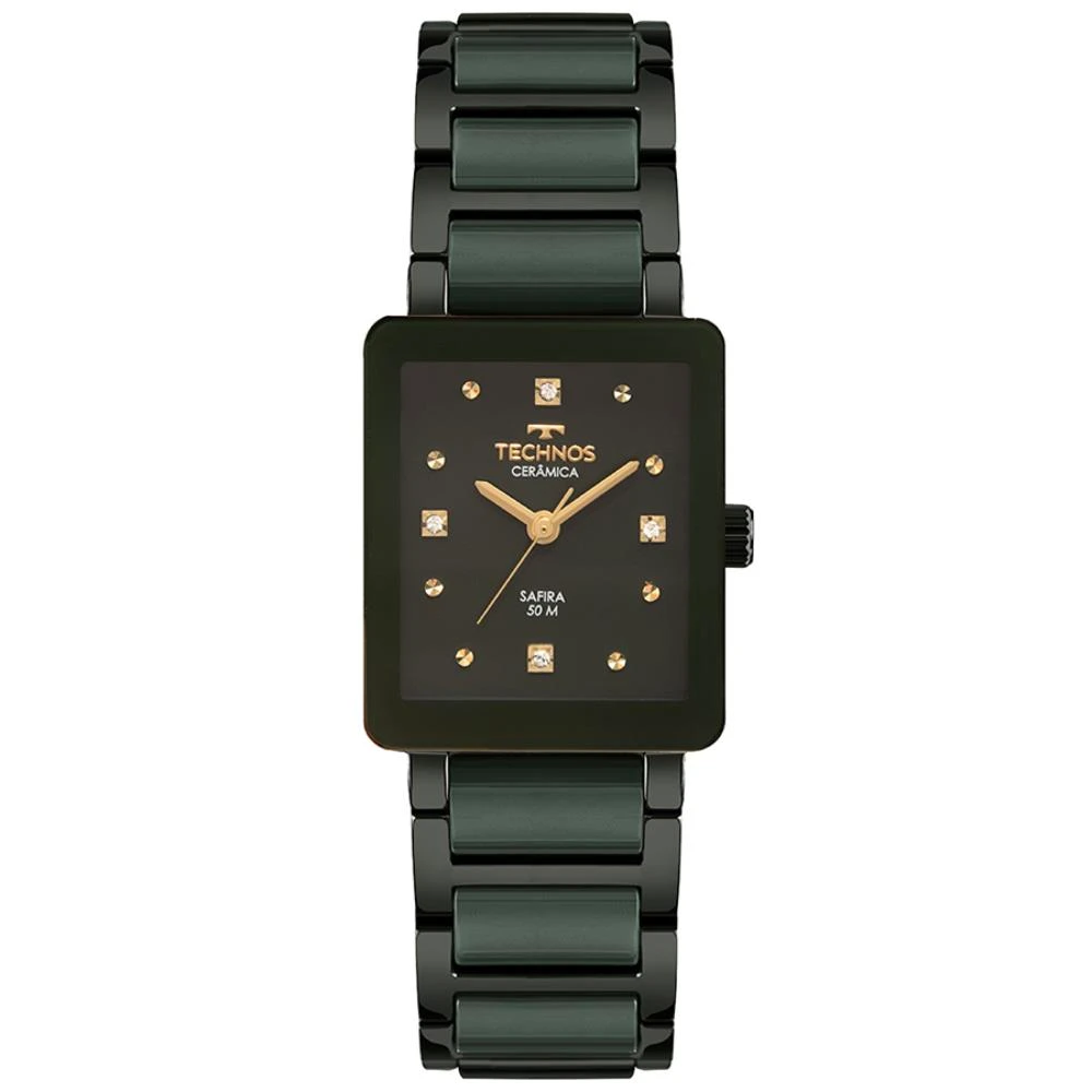 Caixa de Aço InoxPulseira de Aço Inox com detalhes em cerâmica verdeFundo de PressãoResistente à Água 5 AtmDiâmetro / Largura da Caixa: 22.00 MM x 27.00 MMVidro de SafiraFunções: AnalógicoMaquina JaponesaAlimentação do Maquinário: BateriaMostrador Preto com pedrasGarantia de 1 Ano
