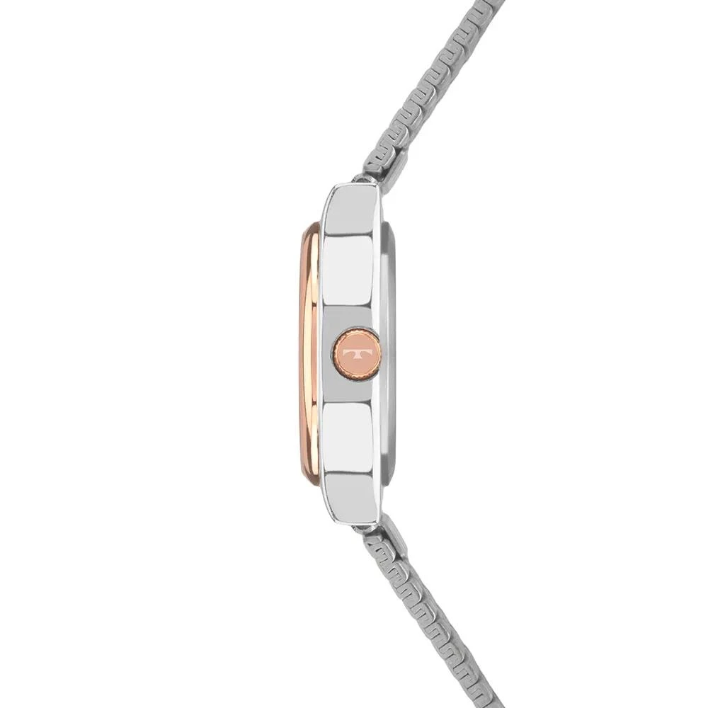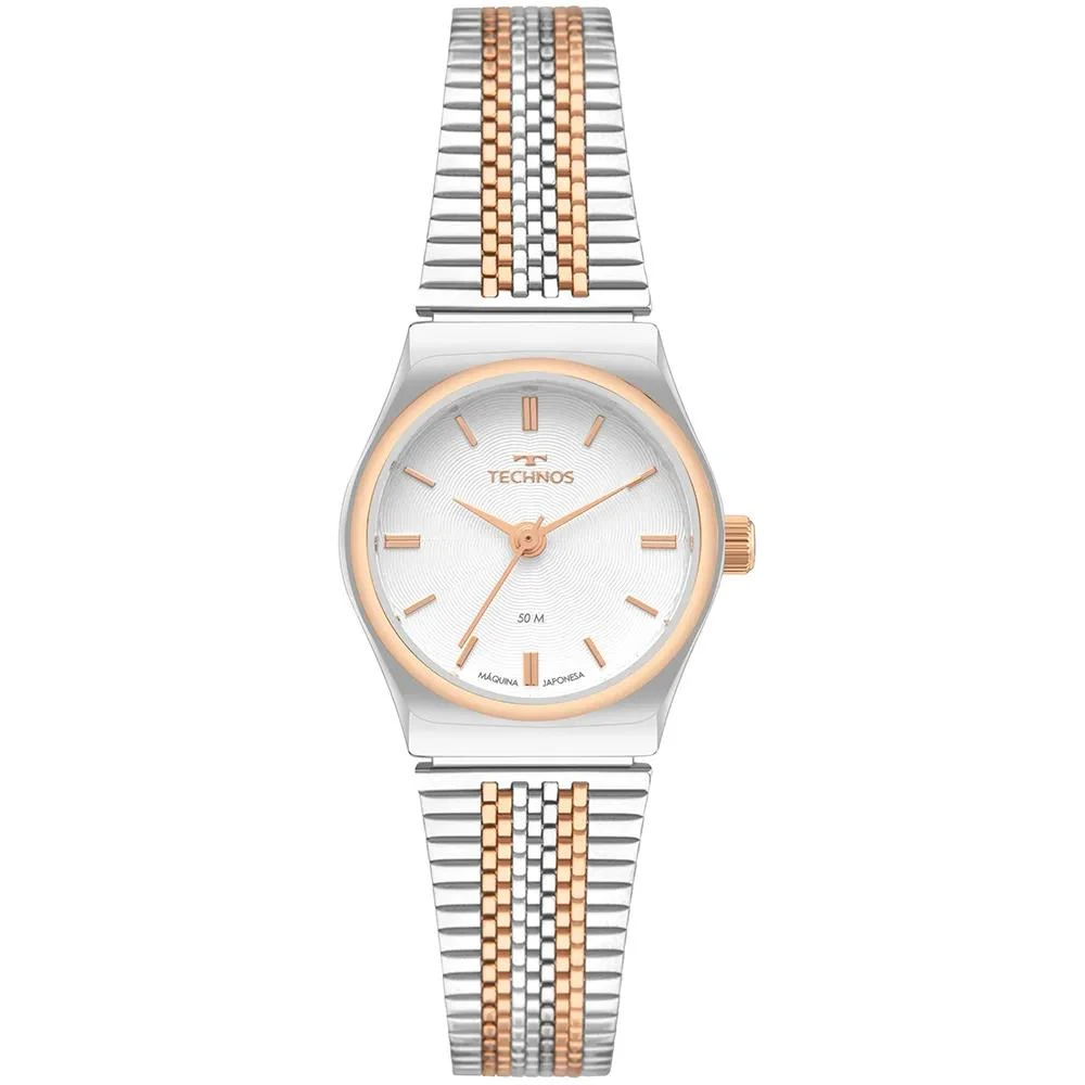 Caixa de Aço InoxPulseira de Aço InoxFundo de PressãoResistente à Água 5 AtmDiâmetro / Largura da Caixa: 23.00 MMVidro de Cristal MineralFunções: AnalógicoMaquina JaponesaAlimentação do Maquinário: BateriaMostrador PrateadoPrateado com RoséGarantia de 1 Ano