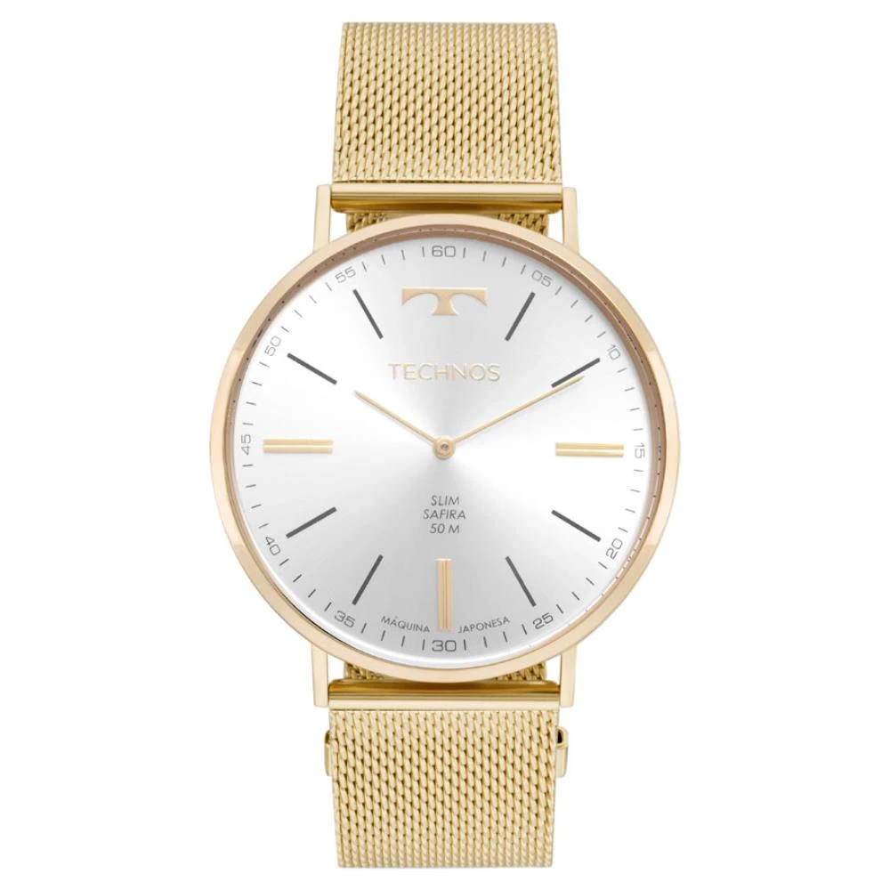 Caixa de AçoPulseira de Malha de Aço MeshFundo de PressãoResistente à Água 5 AtmDiâmetro / Largura da Caixa: 44.00 MMEspessura da Caixa: 8.00 MMVidro: SafiraFunções: Analógico, SlimAlimentação do Maquinário: BateriaMostrador PrateadoMaquinário Japonês