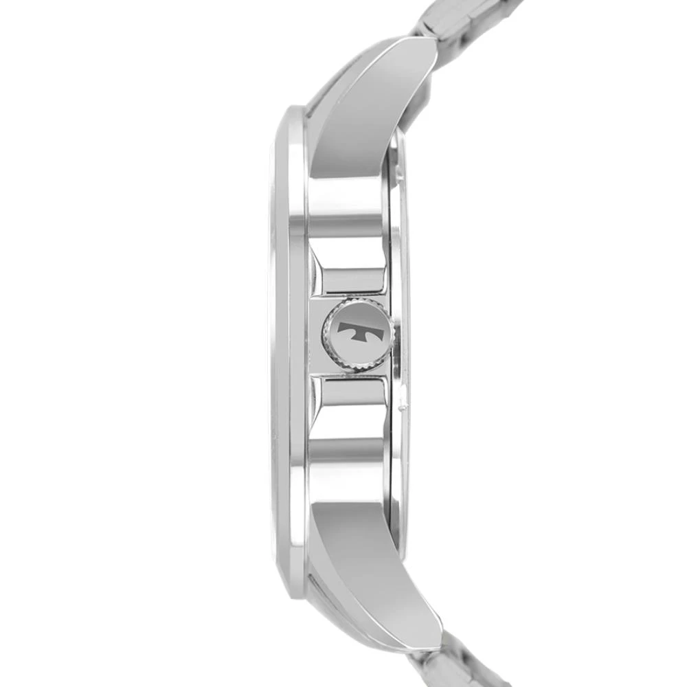 Caixa de AçoPulseira de AçoFundo RosqueadoResistente à Água 5 AtmDiâmetro / Largura da Caixa: 45.00 MMFunções: Analógico, CalendárioAlimentação do Maquinário: BateriaMostrador Preto com Números e detalhes em vermelhoMaquinário Japonês