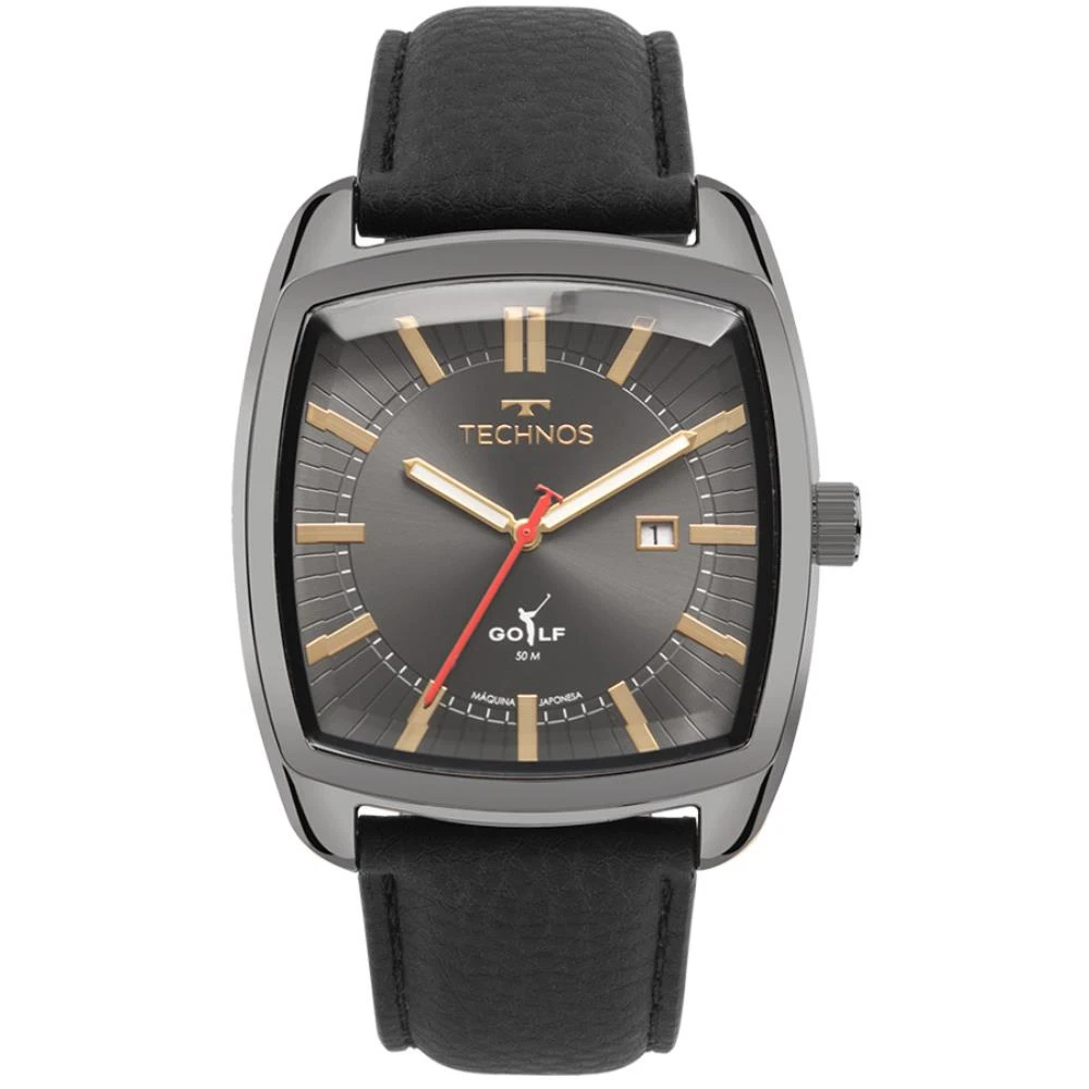 Caixa de AçoPulseira de Couro Legítimo PretoFundo de PressãoResistente à Água 5 AtmDiâmetro / Largura da Caixa: 42.00 MM x 42.00 MMFunções: Analógico, CalendárioAlimentação do Maquinário: BateriaMostrador Grafite com detalhes em douradoMaquinário JaponêsLinha: Technos Golf