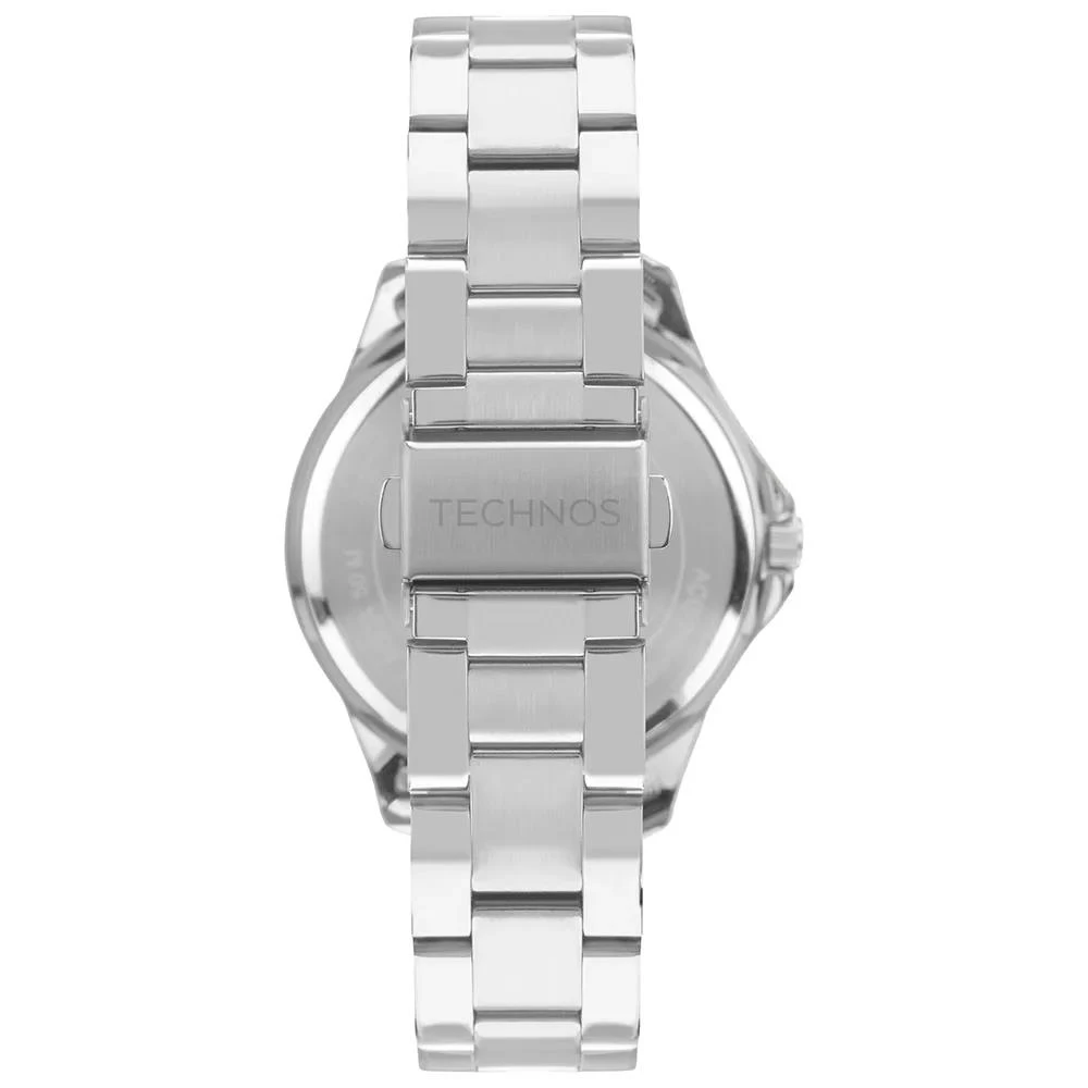 Caixa de AçoPulseira de AçoFundo de PressãoResistente à Água 5 AtmDiâmetro / Largura da Caixa: 42.00 MMFunções: Analógico, CalendárioAlimentação do Maquinário: BateriaMostrador Azul com Todos os NúmerosMaquinário Japonês
