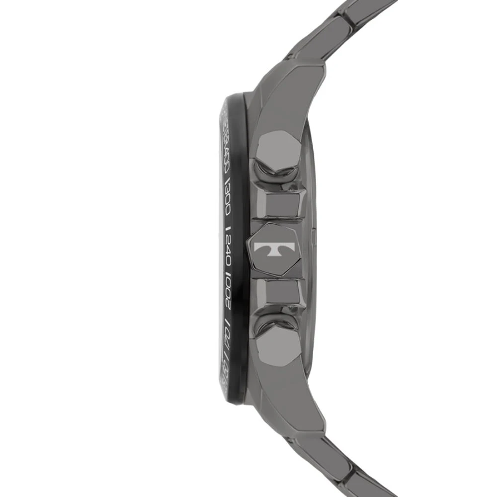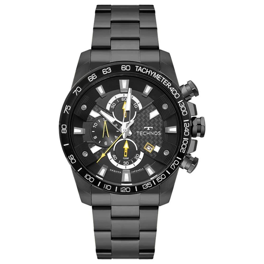 Caixa de AçoPulseira de AçoFundo RosqueadoResistente à Água 10 AtmVidro: Cristal MineralDiâmetro / Largura da Caixa: 46.00 MMFunções: Analógico, Cronógrafo, Calendário, TaquímetroAlimentação do maquinário: BateriaMostrador Preto com detalhes em AmareloAro Fixo Preto com TaquímetroLinha: Technos Performance - TS CarbonGarantia de 1 Ano