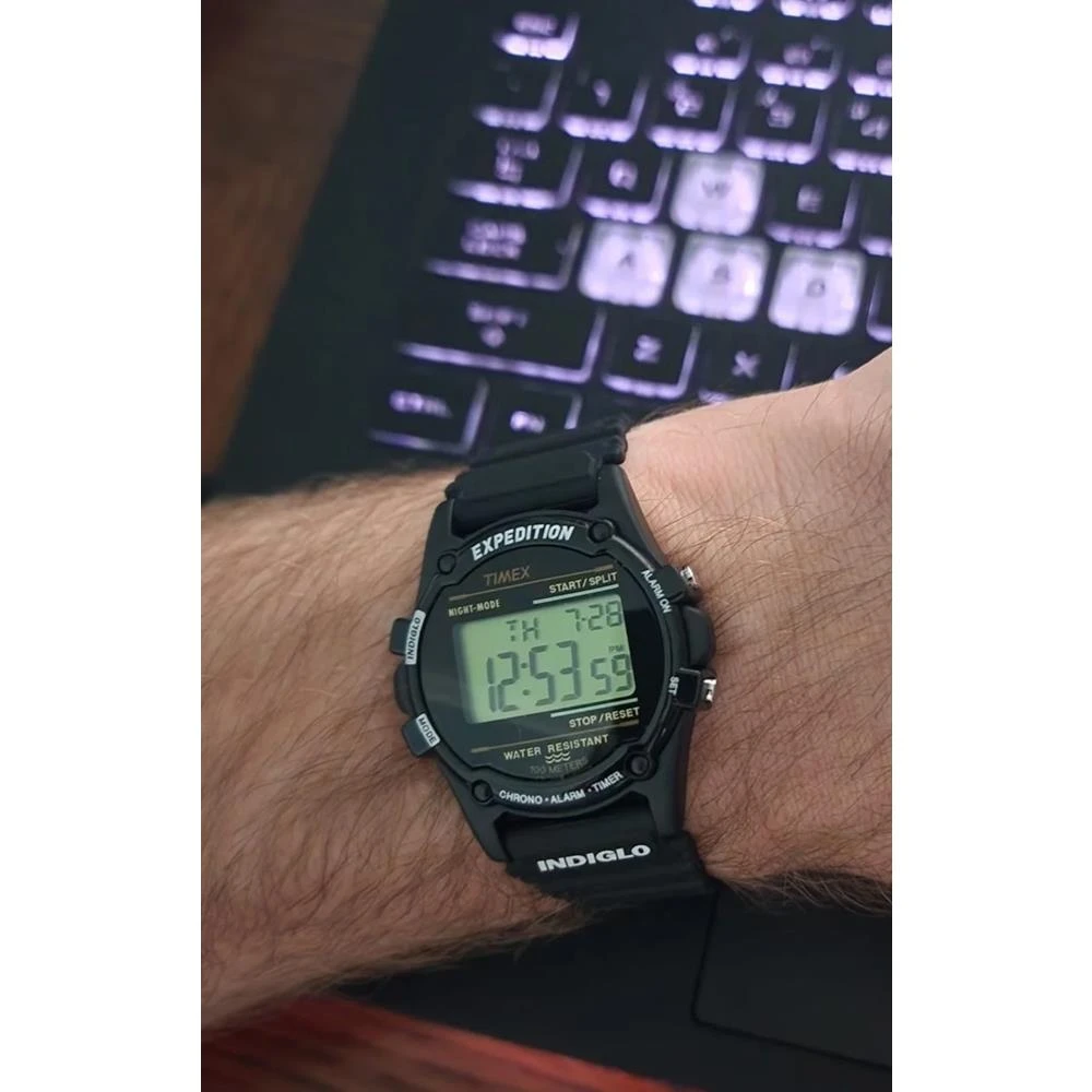 Funções: Digital, Iluminação (Indiglo Night Light), Dual Time, Timer Regressivo (até 24h), Cronógrafo de 99 voltas, Sinal HorárioResistência à Água: 100mDiâmetro da Caixa: 40 mmCaracterísticas: com caixa em Resina Preta e pulseira em Poliuretano PretaVidro: AcrílicoFundo ParafusadoAlimentação do maquinário: BateriaMostrador Preto com detalhes em verde e douradoLinha: Timex Expedition AtlantisGarantia de 1 Ano
