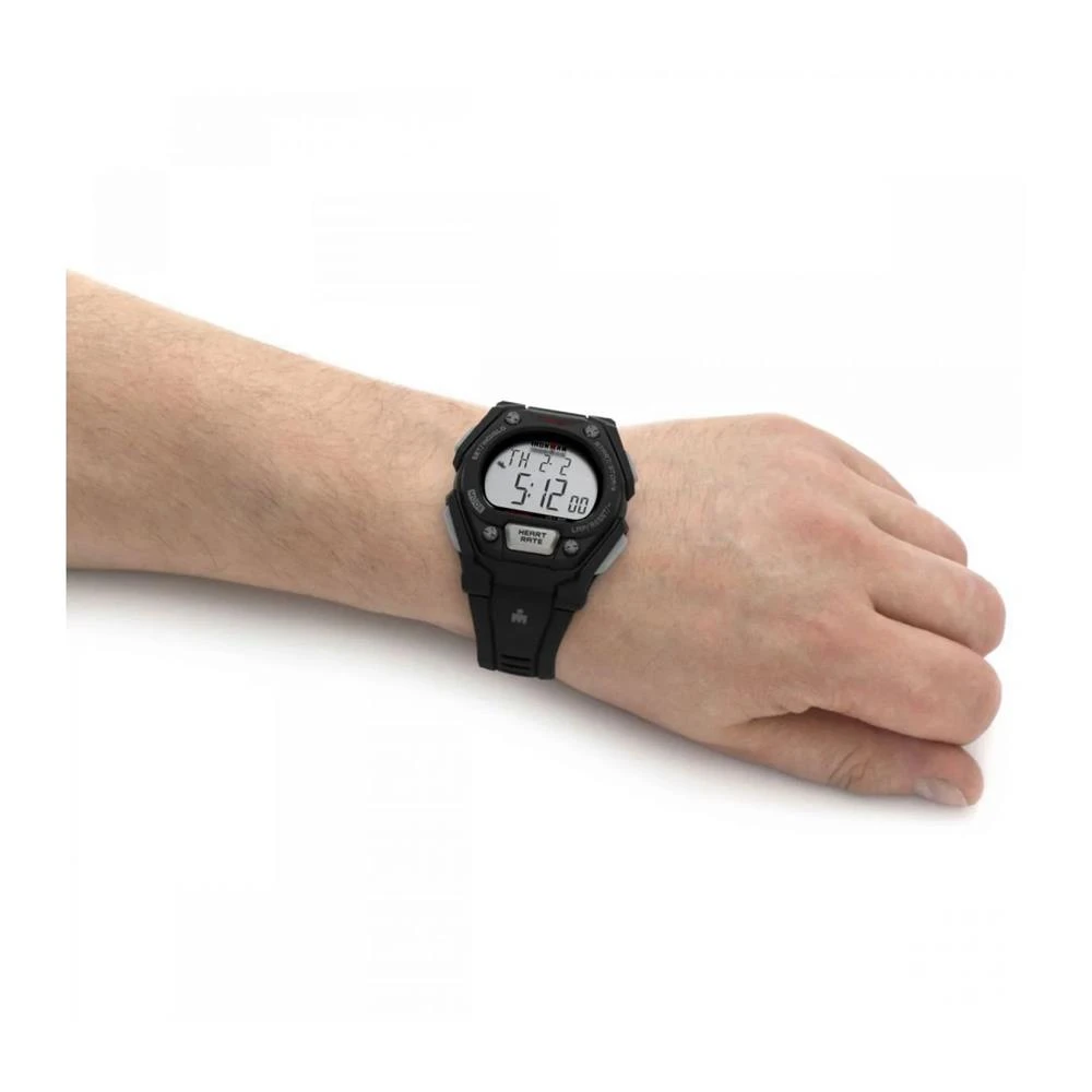 Funções: Digital, Iluminação (Indiglo Night Light), Calendário, Cronógrafo de 10 voltas, 2 Alarmes, Timer, Sinal Horário Opcional, Batimento CardíacoResistência à Água: 50mDiâmetro da Caixa: 46 mmCaracterísticas: com caixa em Resina Preto e pulseira em Poliuretano PretaVidro: AcrílicoFundo ParafusadoAlimentação do maquinário: BateriaMostrador Preto com detalhes em vermelhoLinha: Timex Ironman Heart RateGarantia de 1 Ano