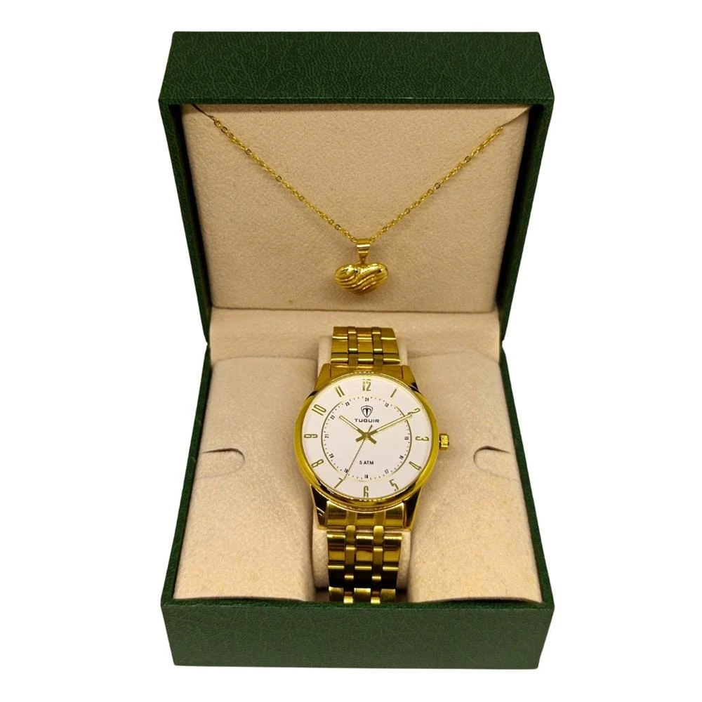 Funções: AnalógicoResistência à Água: 50mDiâmetro da Caixa: 39 mmCaracterísticas: com caixa em Metal e pulseira em AçoVidro: Cristal MineralFundo RosqueadoAlimentação do maquinário: BateriaMostrador Branco com Todos os NúmerosMaquinário japonês+ Corrente e Pingente SemijoiaGarantia de 1 Ano