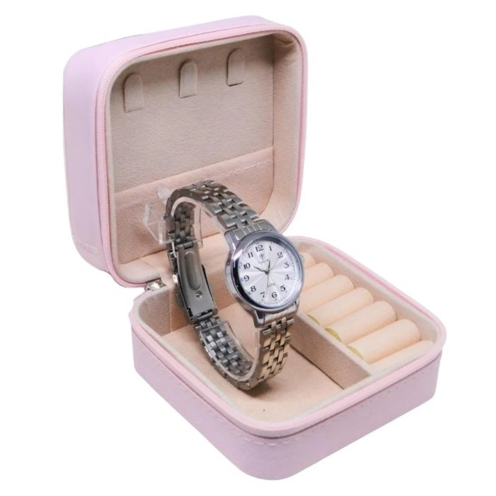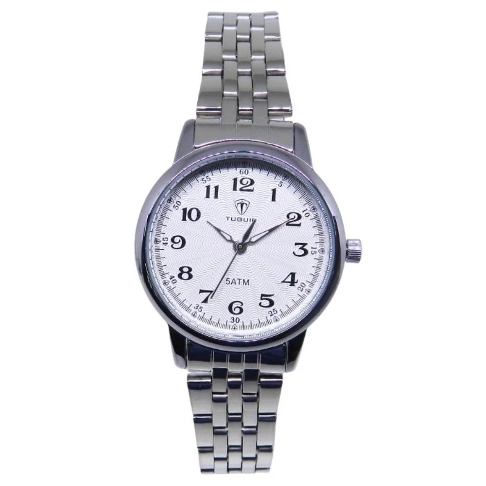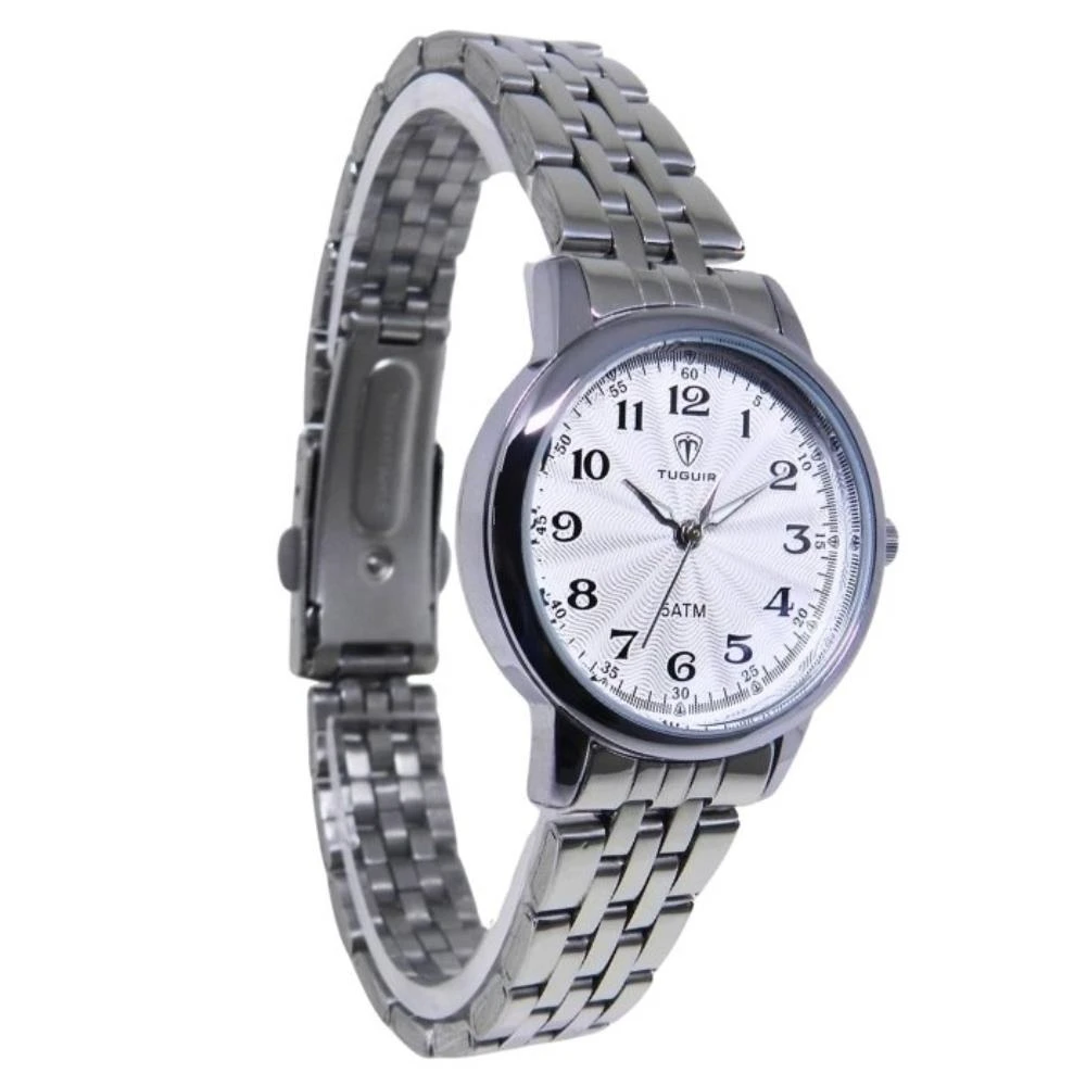 Funções: AnalógicoResistência à Água: 50mDiâmetro da Caixa: 30 mmCaracterísticas: com caixa em Metal e pulseira em AçoVidro: Cristal MineralFundo RosqueadoAlimentação do maquinário: BateriaMostrador Prateado com Todos os NúmerosMaquinário japonês+ Estojo Porta JóiasGarantia de 1 Ano